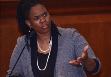 Law Professor Kimberly Norwood, a collaborator with Dr Christi Griffin on the social justice documentary, film, and panel series held at Washington University School of Law in St. Louis speaking during one of the panel discussions. 201