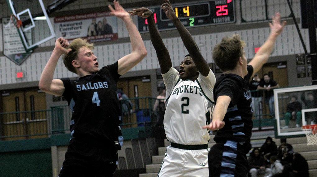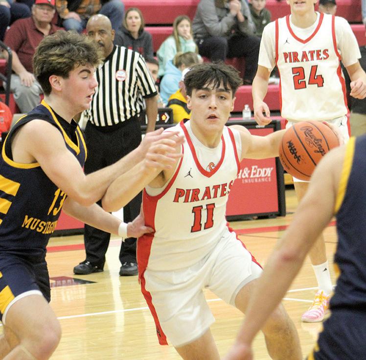 Reeths-Puffer's Marvin Moore tries to chase down the ball after DeTravion Frederick knocked it loose for Mona Shores during Tuesday's game at R-P. The Rockets lost, 53-45.