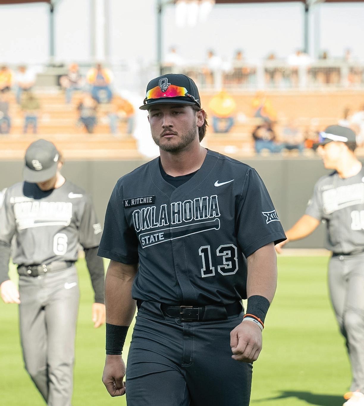 Ritchie has continued to display great defense in the outfield for the Cowboys. He has made multiple sensational catches on sliding and diving plays this season to prevent trouble for the OSU pitchers.