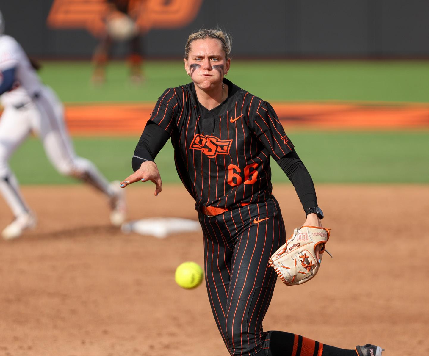 throughout the season, too. She has pitched 179 ⅔ total innings with seven regular season games and the Big 12 Tournament remaining. In the entirety of last season, with postseason games included, she threw 148 total.