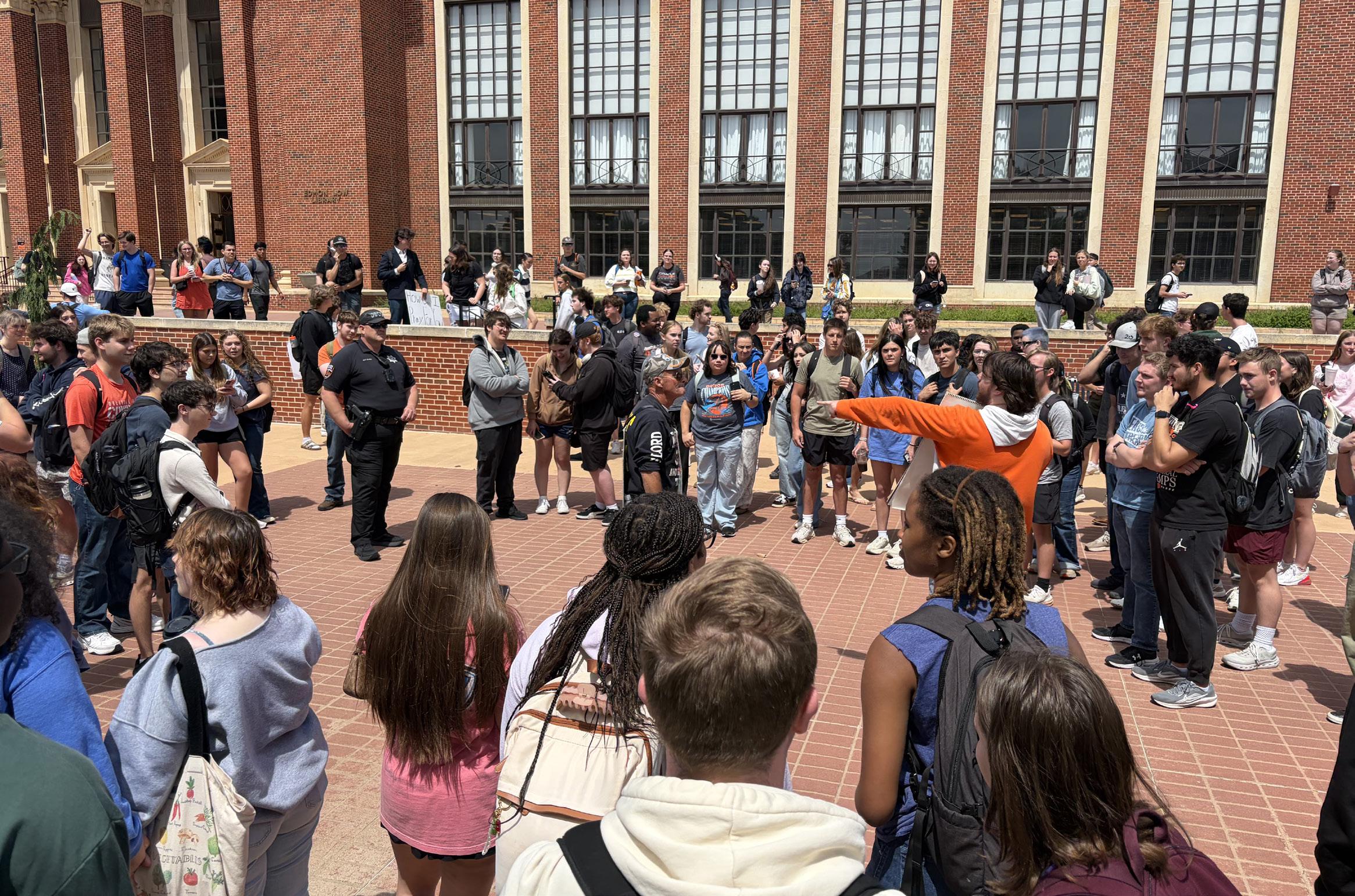 picture of Jesus. It was a scene many longtime Cowboys recognized from past years, but this time, students answered with their own signs, tables and theology. Library Lawn turned into an open‑air argument over faith, sex and free speech as Bourgault, a campus evangelist who said he has preached at universities for about 25 years, returned to Oklahoma State this week. He condemned abortion and LGBTQ+ relationships and singled out what he called “promiscuous women,” while students pushed back with sex‑education advocacy and their own visions of Christianity, raising questions about how his confrontational style fits a modern campus.