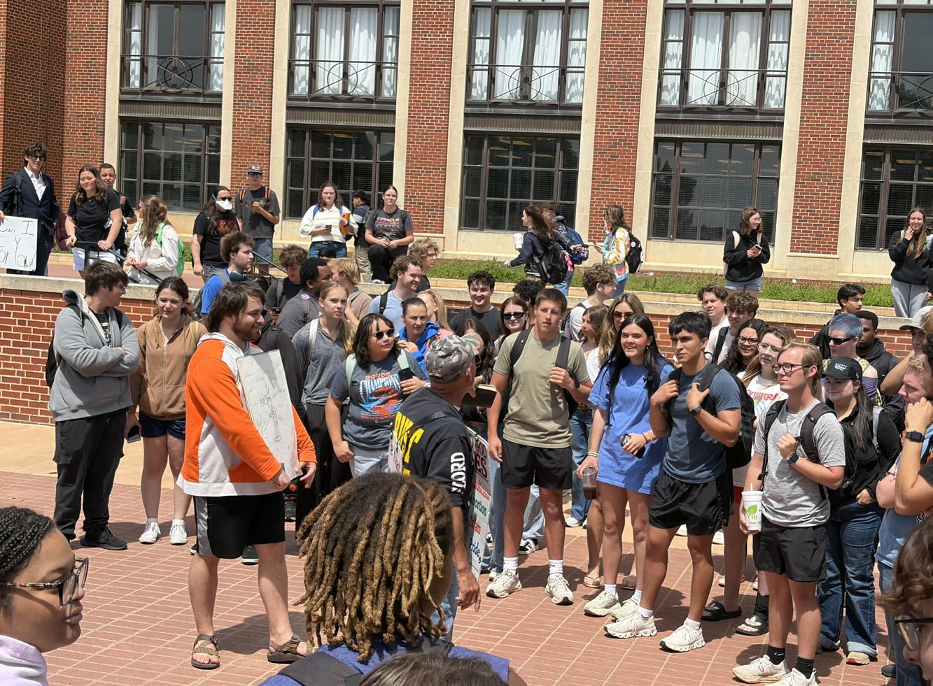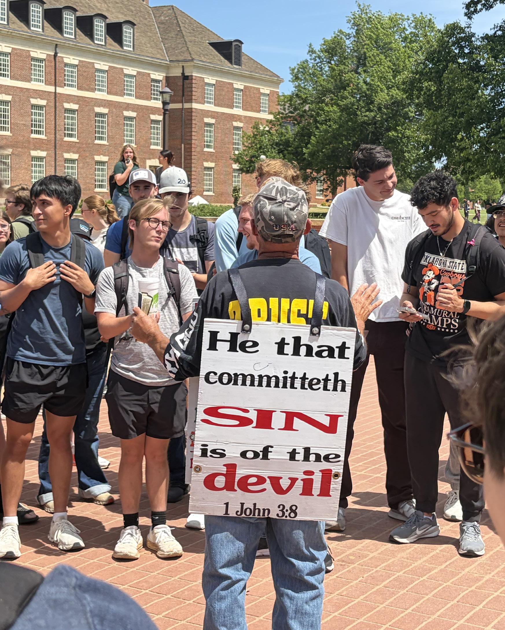 Pointing to 1 Corinthians 13’s warning that faith without love sounds like a “clanging cymbal,” Luschen said the shouting on Library Lawn only confuses people instead of showing them Christ’s love. He said he spent part of the afternoon praying with confused students