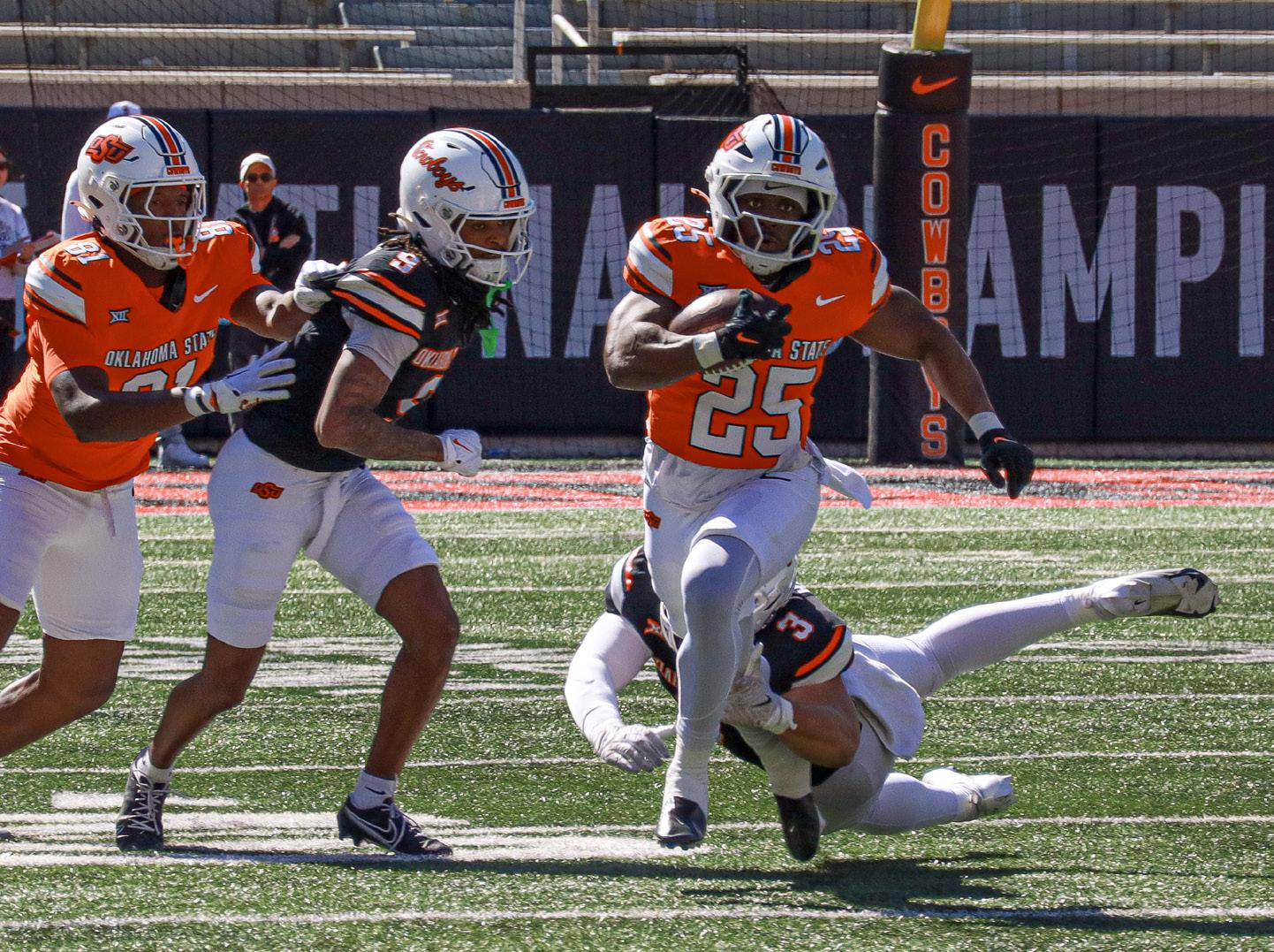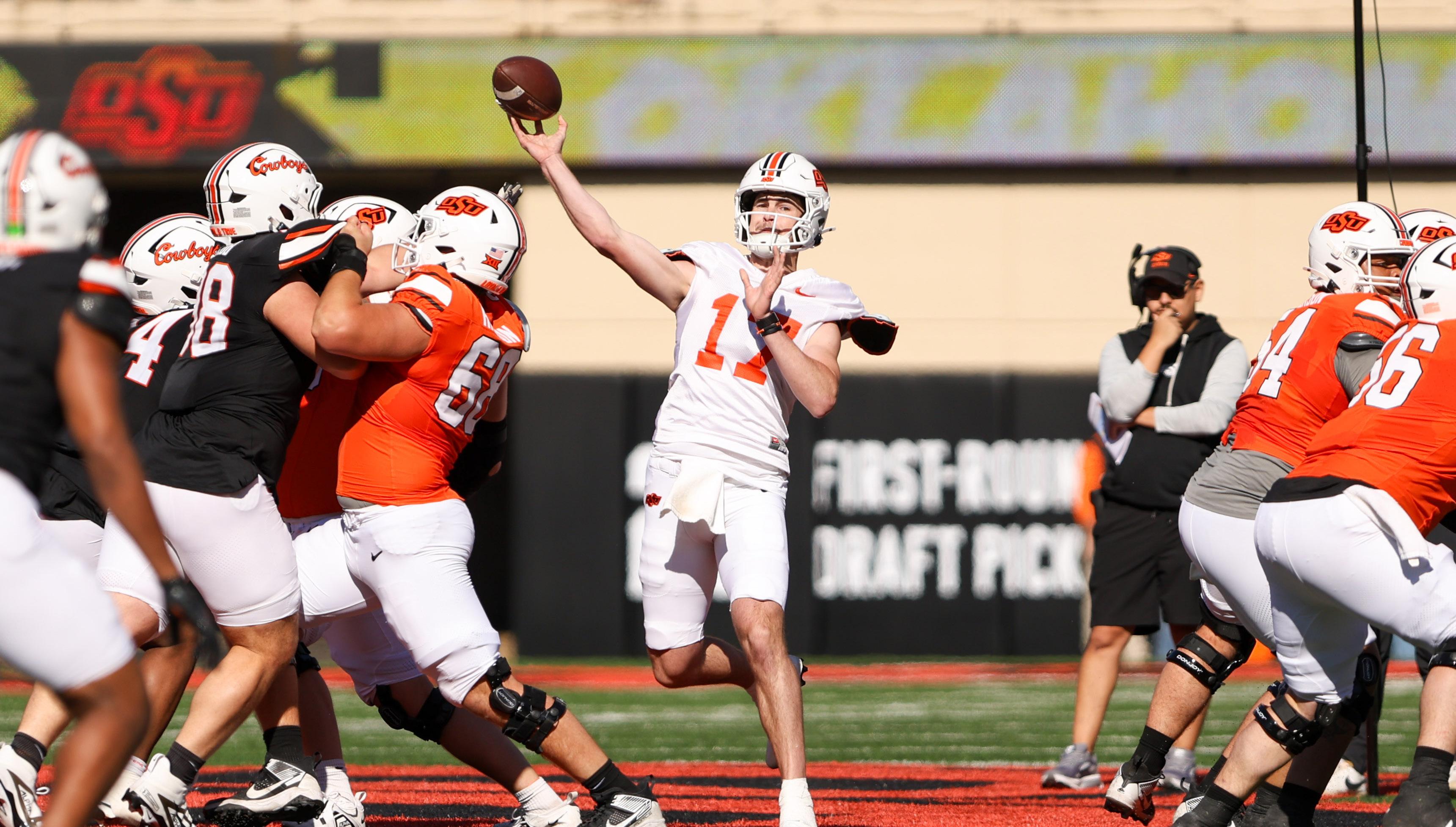 On the first play of Oklahoma State’s spring game, Mestemaker dropped back and looked for Wyatt Young deep down the field, but Cameron Epps picked off the pass.