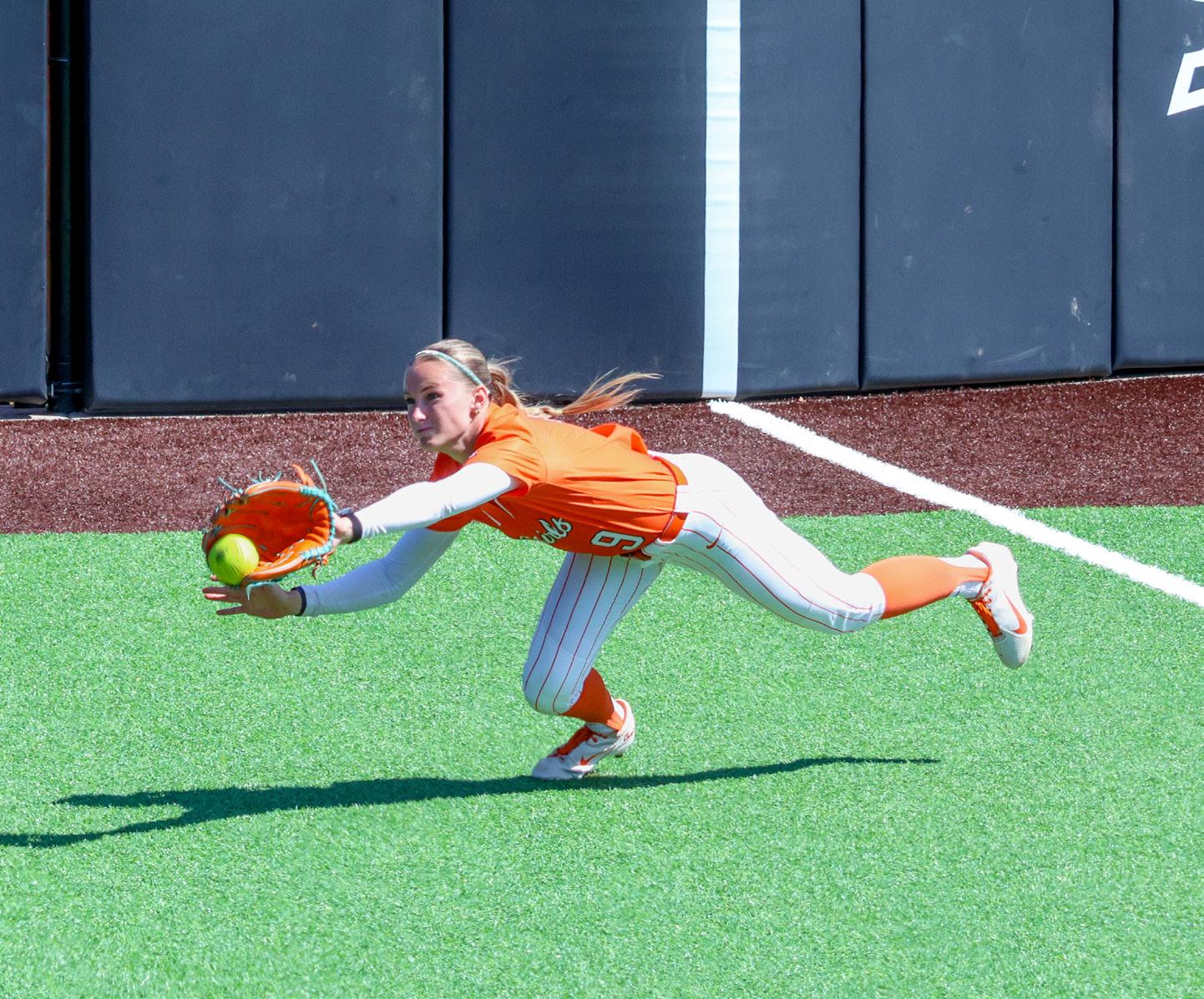 Meylan threw a complete game against the Sooners and struck out nine batters in the win. She also picked up both wins in the Cowgirls’ 2-1 series victory against Arizona this past weekend and tossed a complete-game shutout against the Longhorns — an offense that’s top 12 in the NCAA in batting average and on-base percentage. Overall, it’s been a total workhorse effort from Meylan