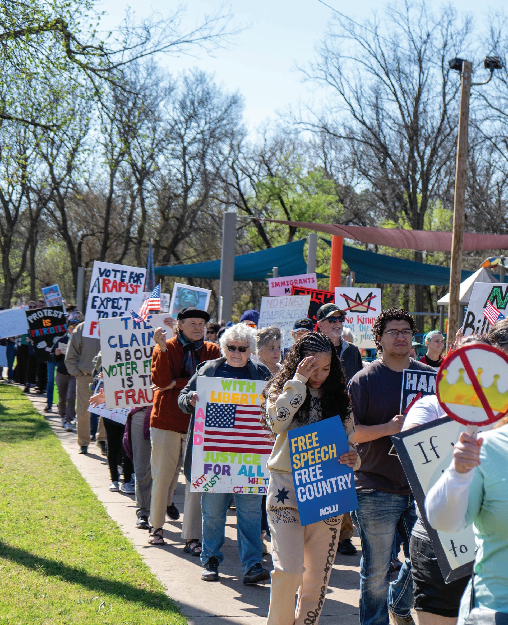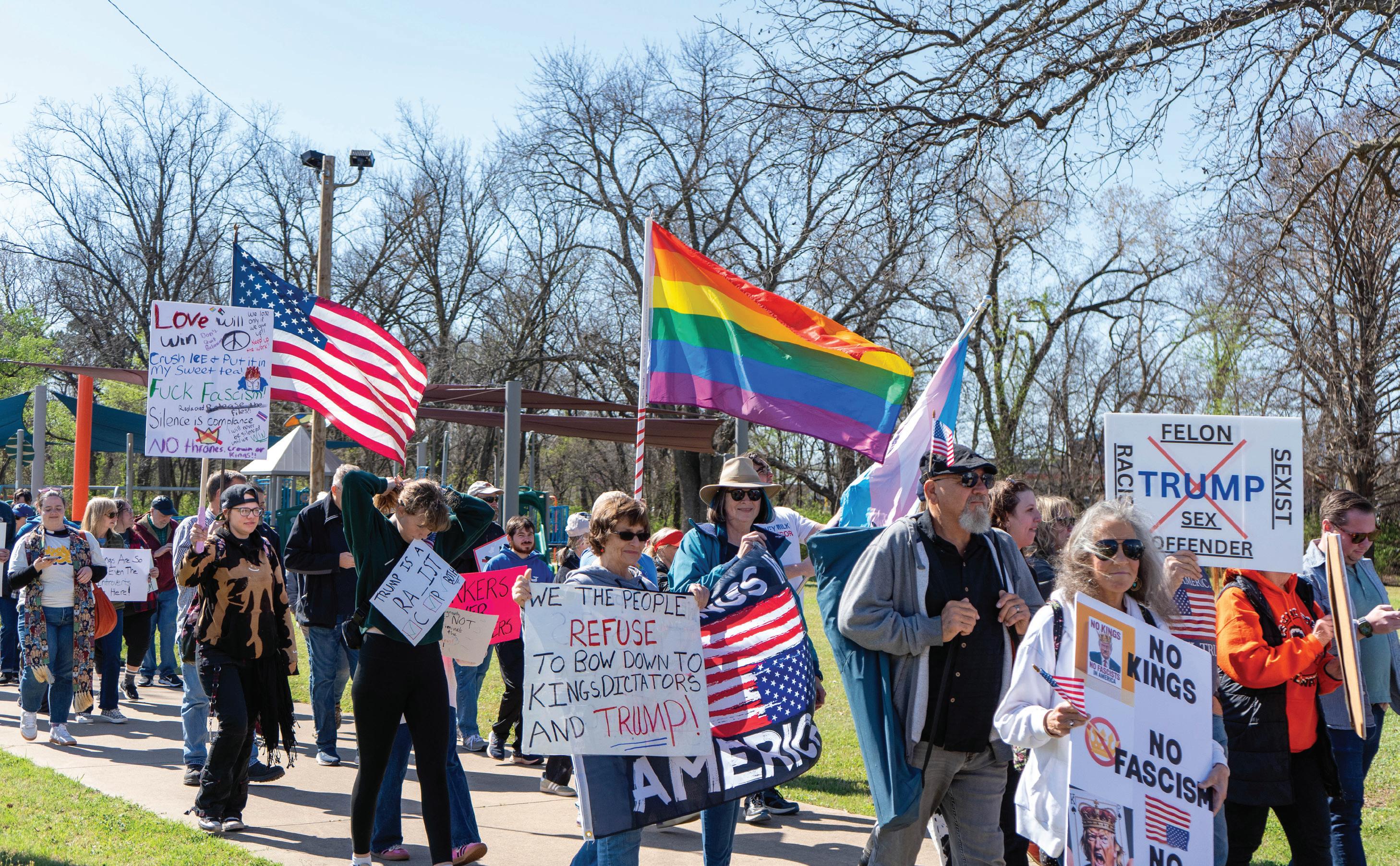 Averett said she and Hammond drew inspiration from Heather Cox Richardson, a historian whose daily newsletter “Letters from an American” has become a touchstone for politically engaged Americans. After watching Richardson speak with Red Wine and Blue network leaders, the two Stillwater women consulted with organizers in Tulsa, learned the organizational requirements and launched their chapter. They coordinated with organizations, including 50501 and the American Civil Liberties Union. The two earlier Stillwater protests had connected with larger demonstrations in Tulsa and Oklahoma City, but Saturday marked the first time organizers concentrated their energy on mobilizing local residents.
