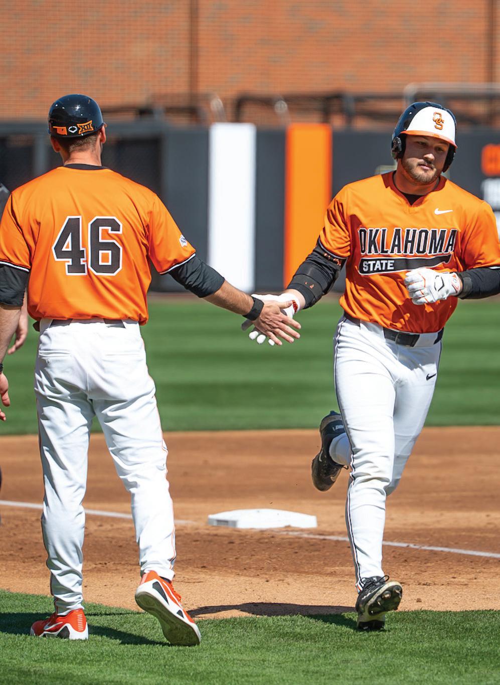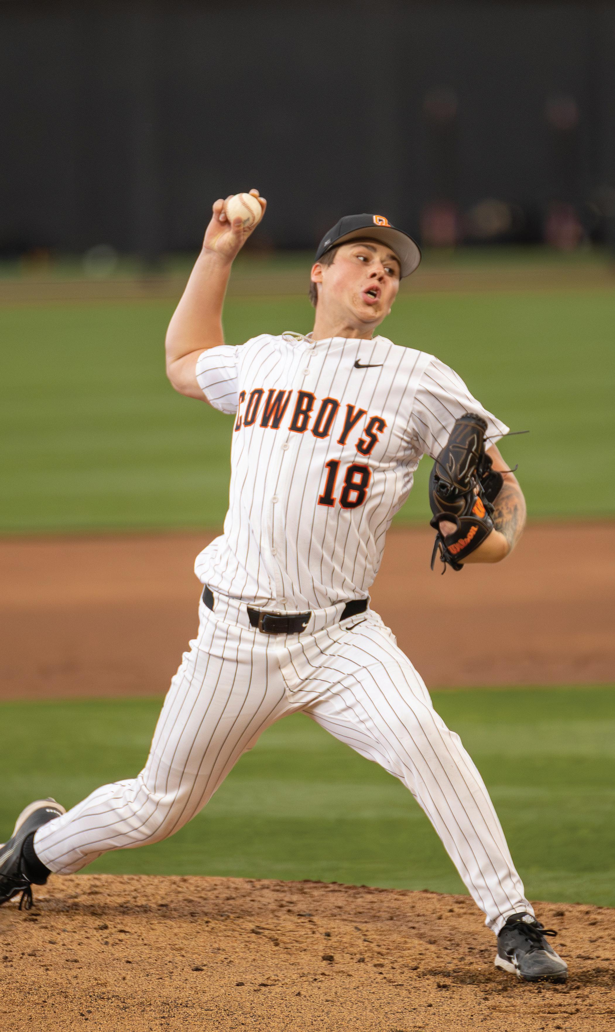 The Cowboys kept the pressure on, loading the bases with a single, a walk and a hit-by-pitch. Brueggemann and TP Wentworth followed with backto-back RBI walks, and Garrett Shull added a full-count RBI hit-by-pitch to give OSU a 6-3 lead.