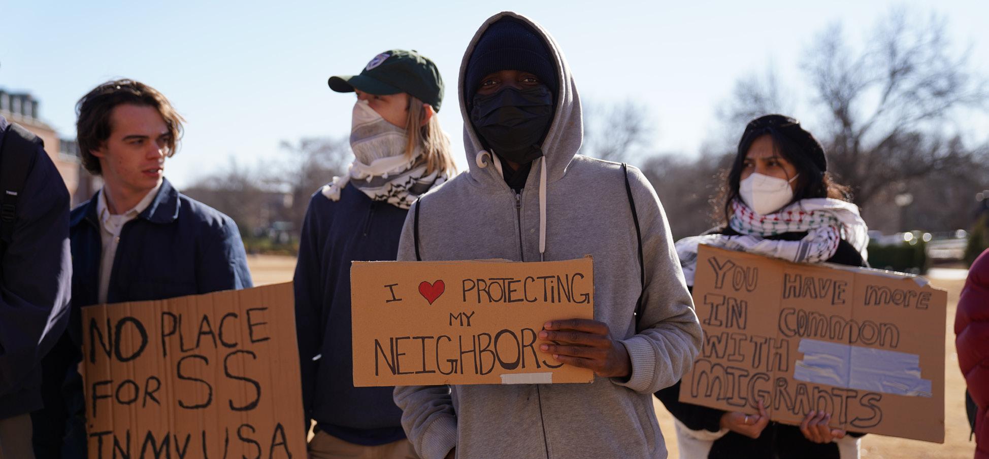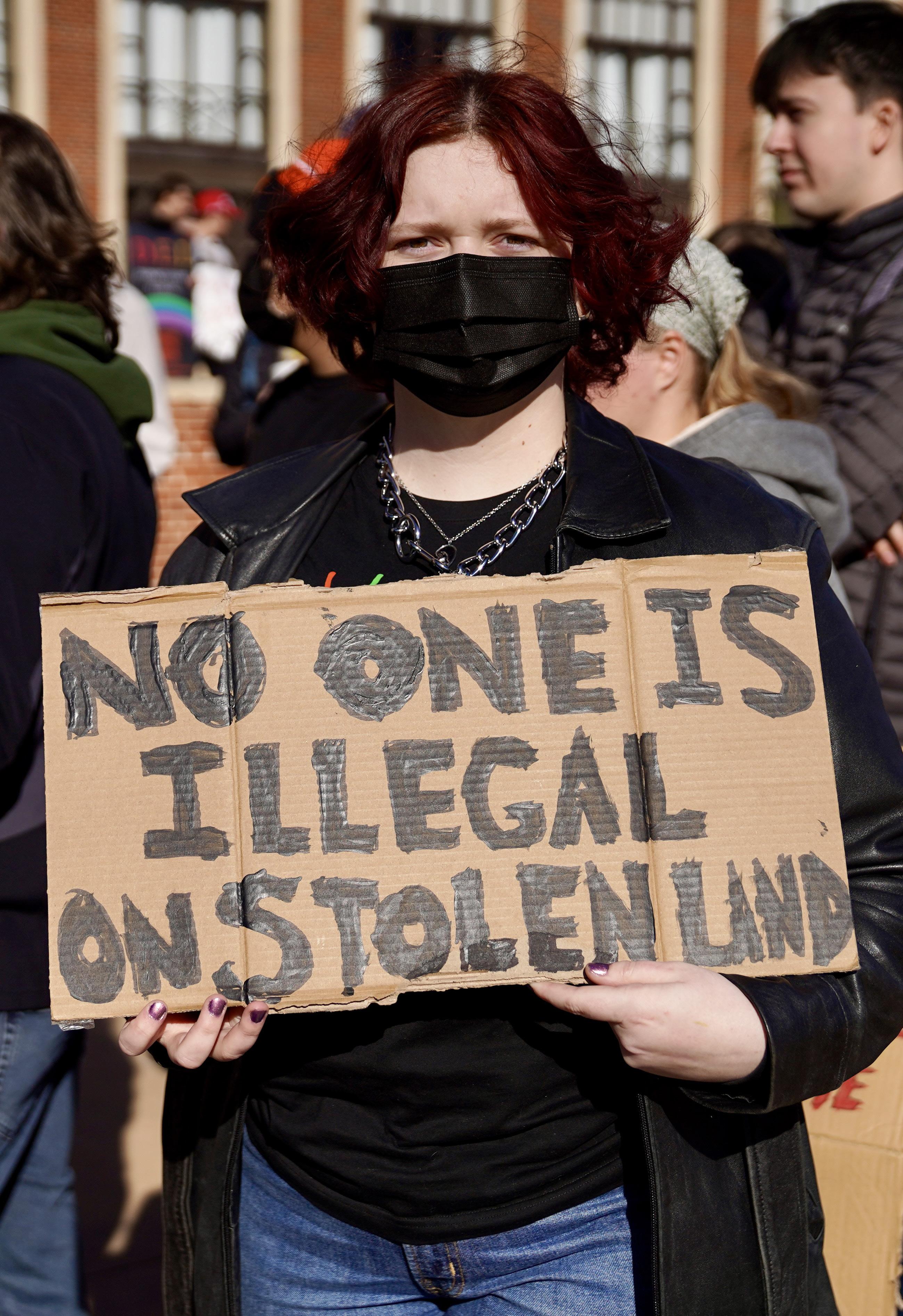 sign reading, “No one is illegal on