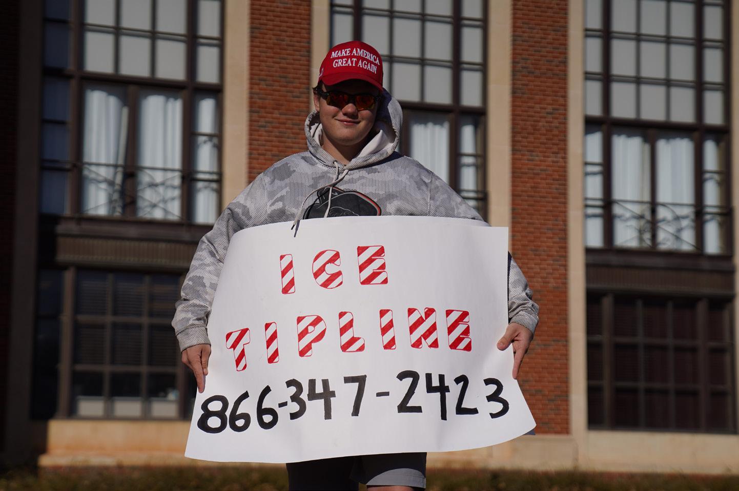 Standing in support of ICE was Caleb Buxton, a senior at OSU, who said he and other supporters were there to protest due to his belief that laws should be upheld, and people who crossed over illegally should be deported as the law is written.