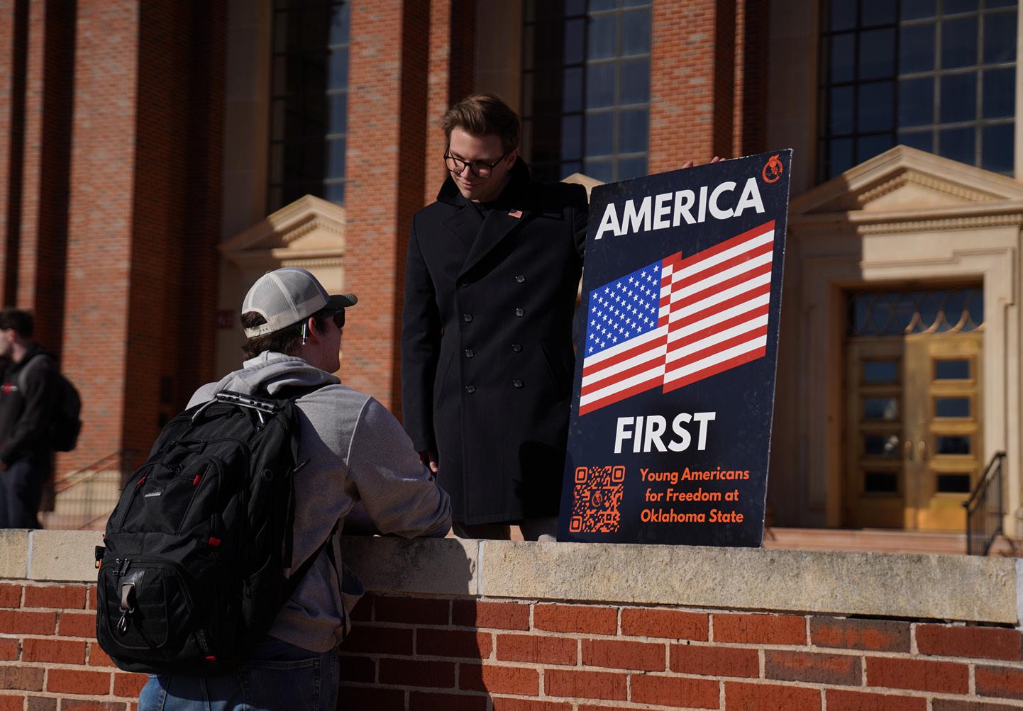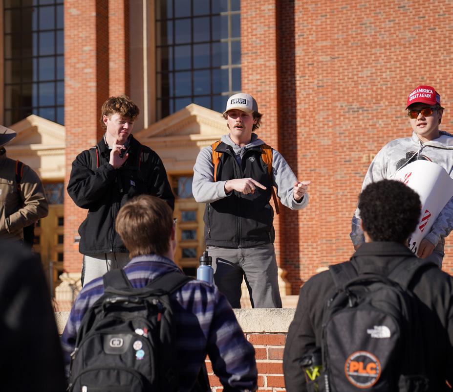 In front of the fountain at Edmon Low Library, Oklahoma State University’s Student Socialist League (SSL) held an anti-U.S. Immigration and Customs Enforcement protest to join the nationwide movement, while mere feet away stood a pro-ice protest in opposition.