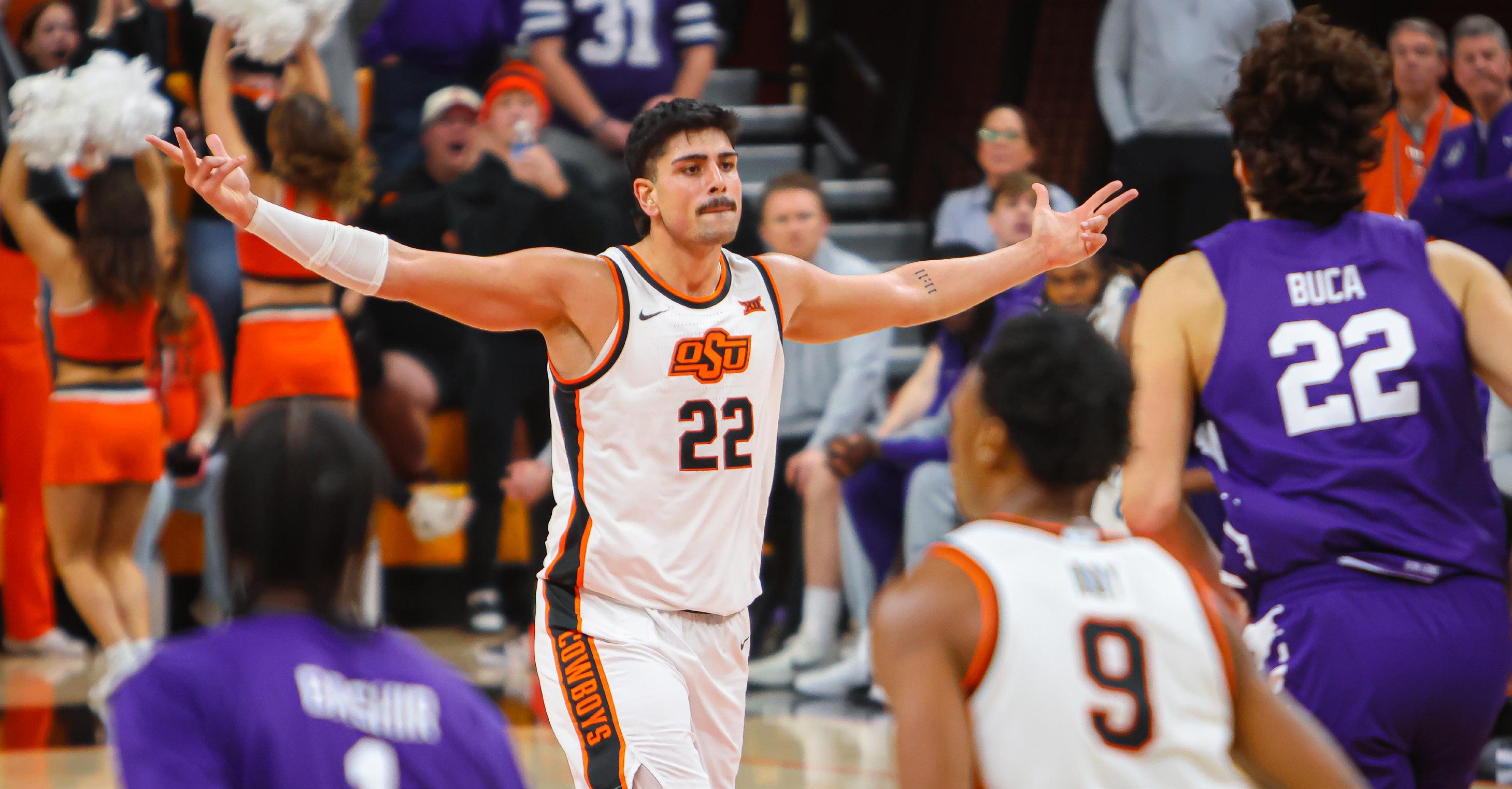 This season, OSU is 7-4 in games when making less than 10 3-pointers, which occurred against St. John’s, Charlotte, Miami (FL), North Texas, Oklahoma, Tulsa, Baylor, Houston, TCU, Colorado and Kansas.