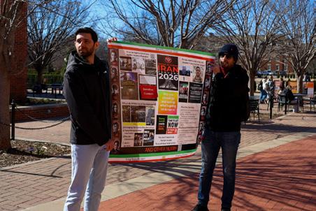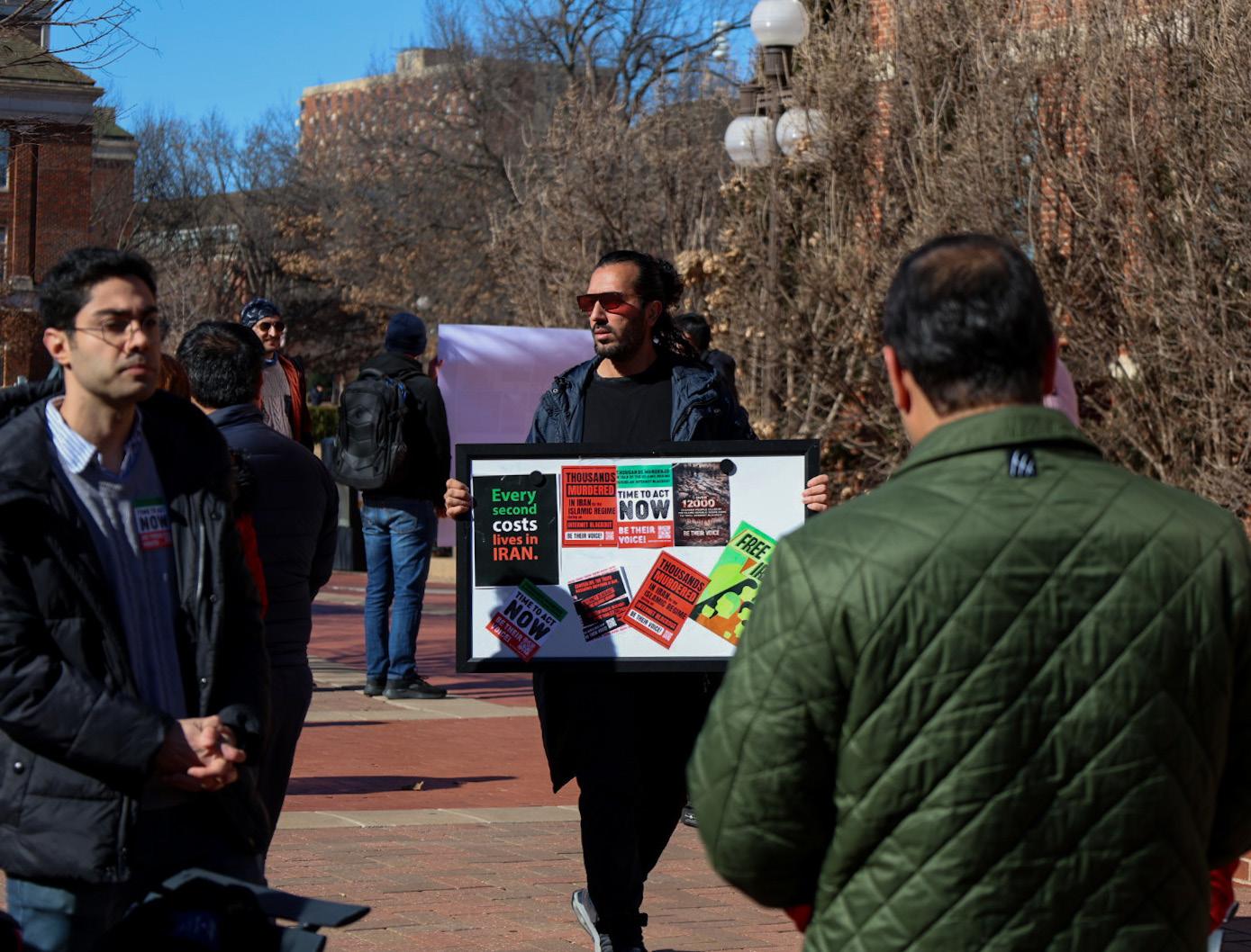 The Iranian Students Association held a peaceful gathering on campus at the Chi O Clock to bring awareness to the crisis in Iran.