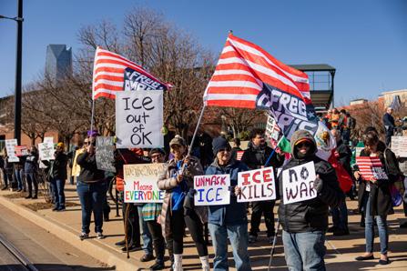 Outside Chickasaw Bricktown Ballpark in Oklahoma City on Tuesday afternoon, protesters gathered to march against U.S. Immigration and Customs Enforcement, joining a nationwide walkout and day of action.