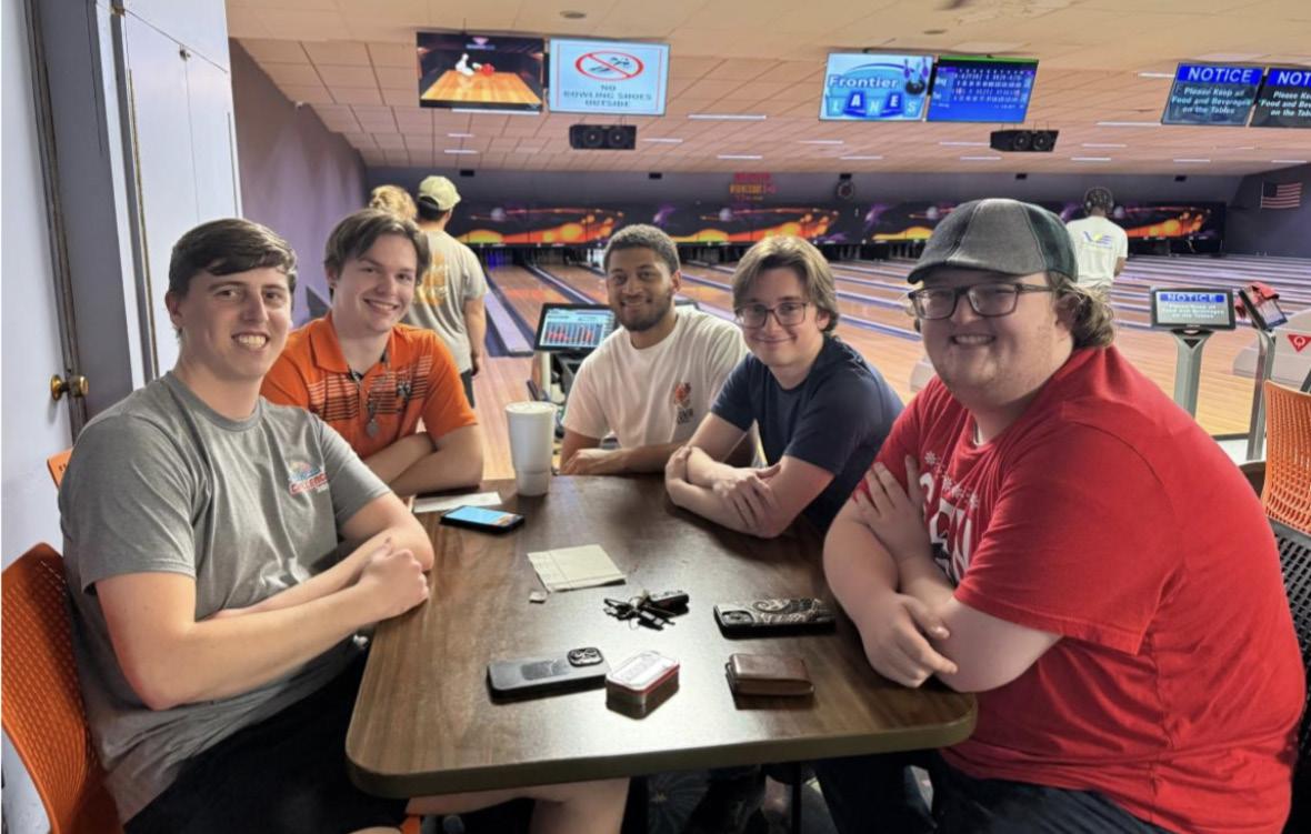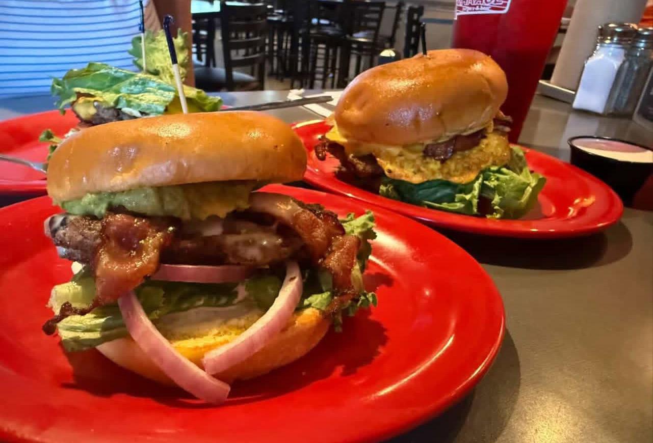 The smell of grilled beef and toasted buns drifts across tables with baskets of burgers and fries. Between bites, students talk about exams, bowling practice and weekend plans.