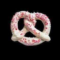 3. Put the pretzel on parchment or wax paper and sprinkle with the Valentine's Day colored sprinkles. Repeat steps 1-3 for the remaining pretzels. Make sure you add sprinkles before the chocolate hardens.