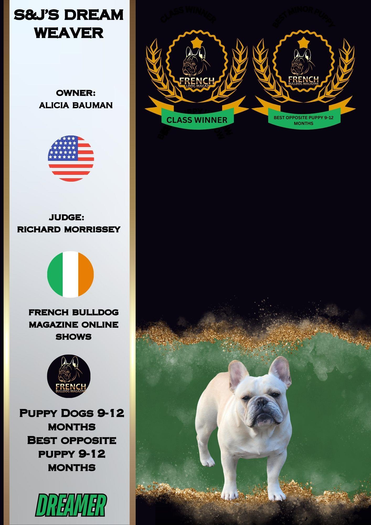 “:Oh my heavens, how wonderful. Thank you judge Richard Morrissey ! I wish I could show in Ireland in person” - Alicia Bauman after winning Best Opposite Sex in Show under Richard Morrissey (Ireland) at our first online show in October. Mia is out of world-famous Winston. You too can win at our online shows!