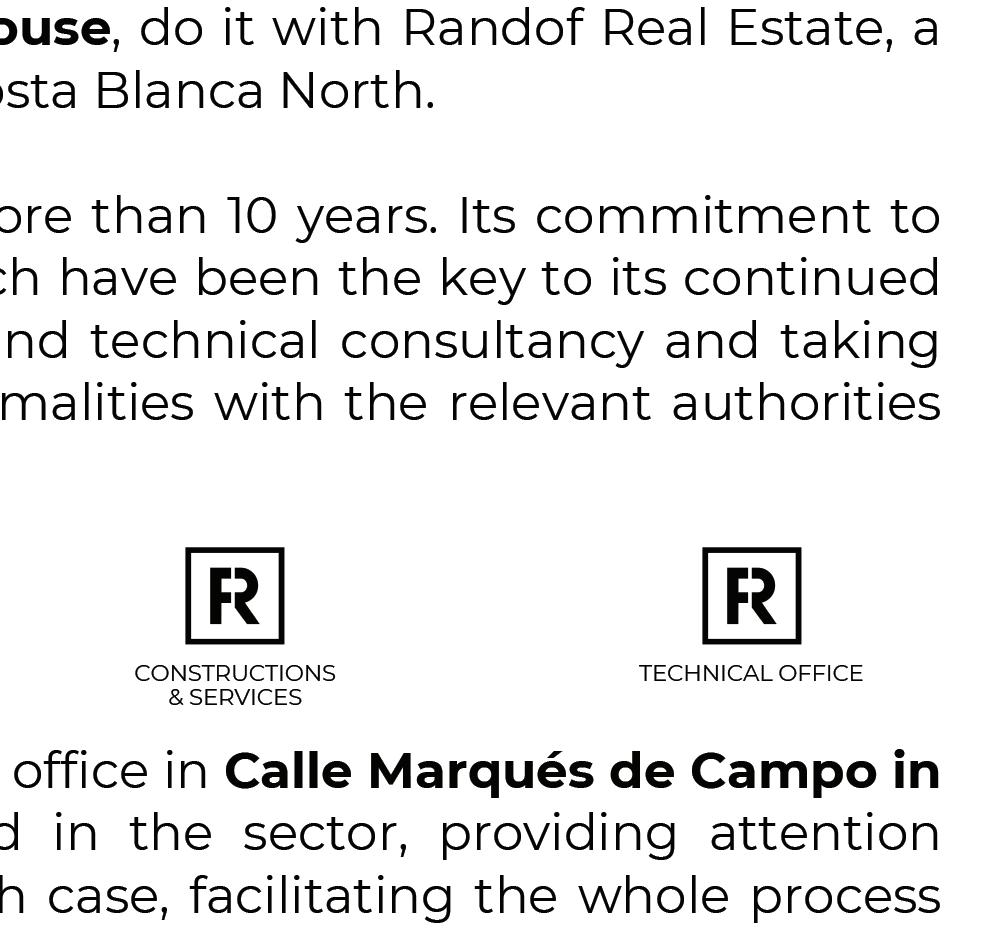 Randof, is characterised by a comprehensive service to national and foreign clients looking to buy or sell property on the Costa Blanca North They have a team of more than 30 highly qualified professionals, multilingual native speakers of more than 7 languages, adapting to the needs of each client