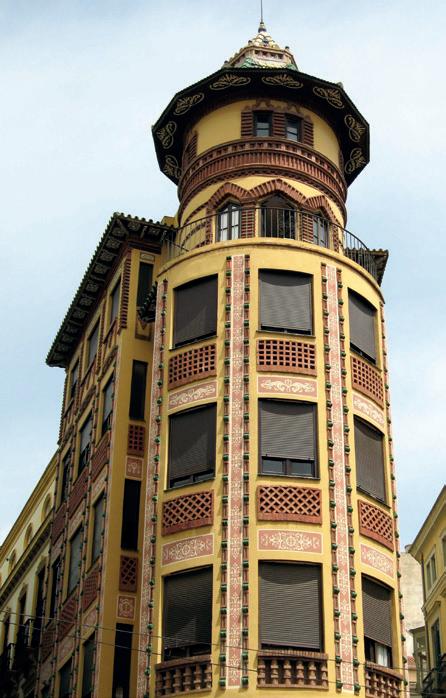 Ein klassischer Deco-Block mit vier Stockwerken von Enrique Rumeu de Armas. Die symmetrische Anordnung und der trapezförmige Grundriss sind originell und typisch für Rumeus klassizistisch-rationalistischen Stil.