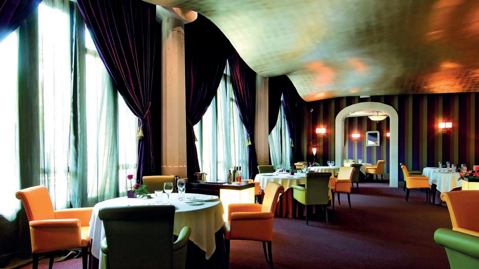 Ranken im Innenraum. Das Restaurant wurde nach dem japanischen Karpfen benannt. An einem Ende des Restaurants gibt es passend zur Einrichtung ein Wasserbecken mit Natursteinwänden. Die Terrasse sorgt dafür, dass man sich hier sofort wohlfühlt – besonders, wenn man auf der zentralen Bank Platz nimmt.