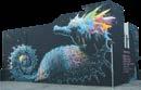 It depicts a bull's head sat above the symbolic hide of a wild bull with the contours of the arena framing the imagery. Foster explained he took inspiration from ‘the symbolic’ features of the bullring, including the bullfighter's cape, the colours of the festival and a bull’s head adorning one of its doors.