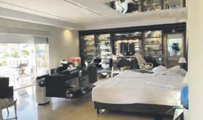 The suite itself featured an ele vated marble jacuzzi, support ed by marble columns, while a giant mirror was placed on the ceiling above the bed.