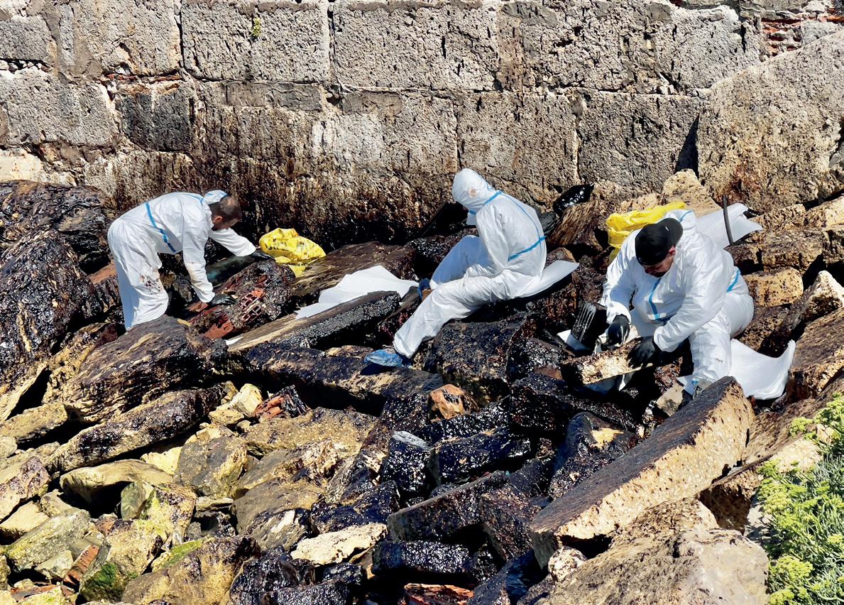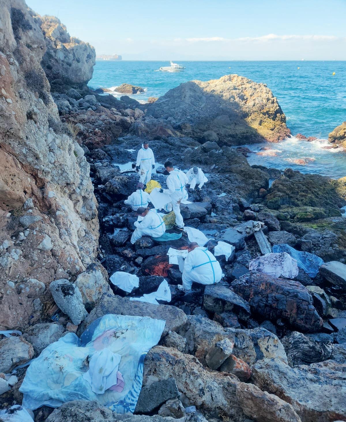 CLEAN UP: removing the oil from Gibraltar’s shores
