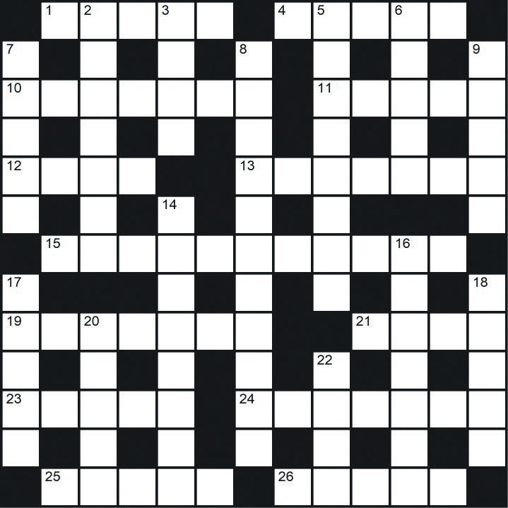 Across: 1 Scowl, 4 Ashen, 10 Arizona, 11 Irish, 12 Rind, 13 Dessert, 15 Lionhearted, 19 Beseech, 21 Nero, 23 Evict, 24 Enrages, 25 Heirs, 26 Herds.