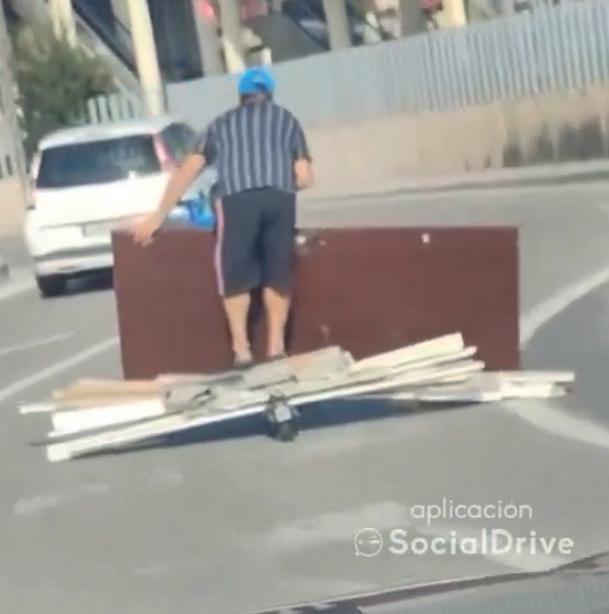 By Yzabelle BostynAN e-scooter rider has been filmed carrying a door and huge slats of wood on the base of his two-wheeled vehicle in southern Spain. The viral video is alleged to have been recorded in San Fernando, Cadiz. The middle-aged rider can be seen travelling in between cars on his scooter while trying to balance the large number of items perched on the electric vehicle by his feet. He is then seen taking on a roundabout, as travellers in the car behind him record a video on their mobile phones.