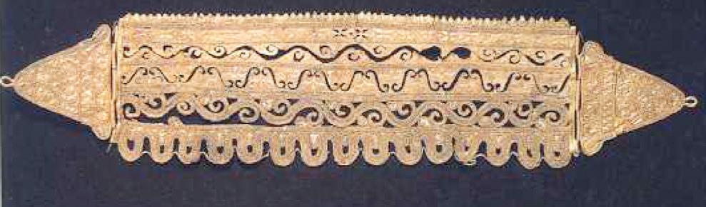 Suddenly the plough hits something, which turns ut to be a ceramic urn buried 1.5 metres deep. Cracking it open, the urn reveals a golden diadem, three gold necklaces, a golden brooch and various gold and silver bracelets. So highly valuable was the treasure that the landowning Torres Orduña family was in the process of selling the pieces to French researchers when Madrid’s Museo Arqueológico Nacional heard of the hoard.