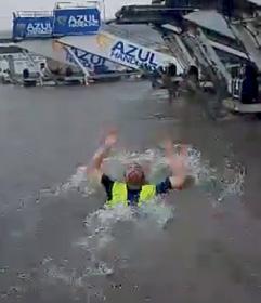 There were barely believable scenes of ground crew swimming in the floods and passengers peering out of the window as their plane was submerged on the runway.