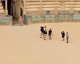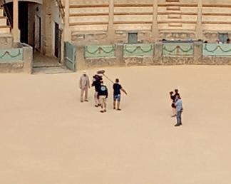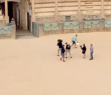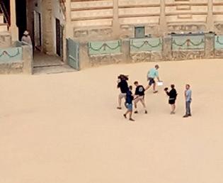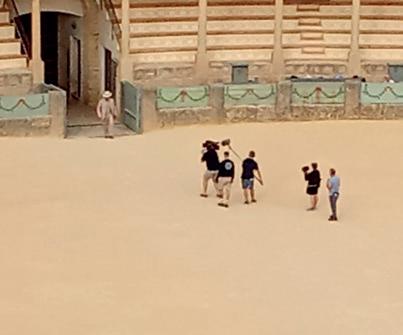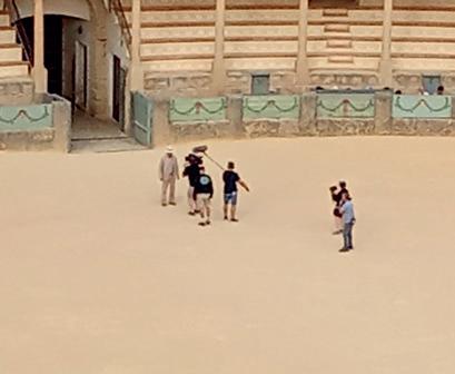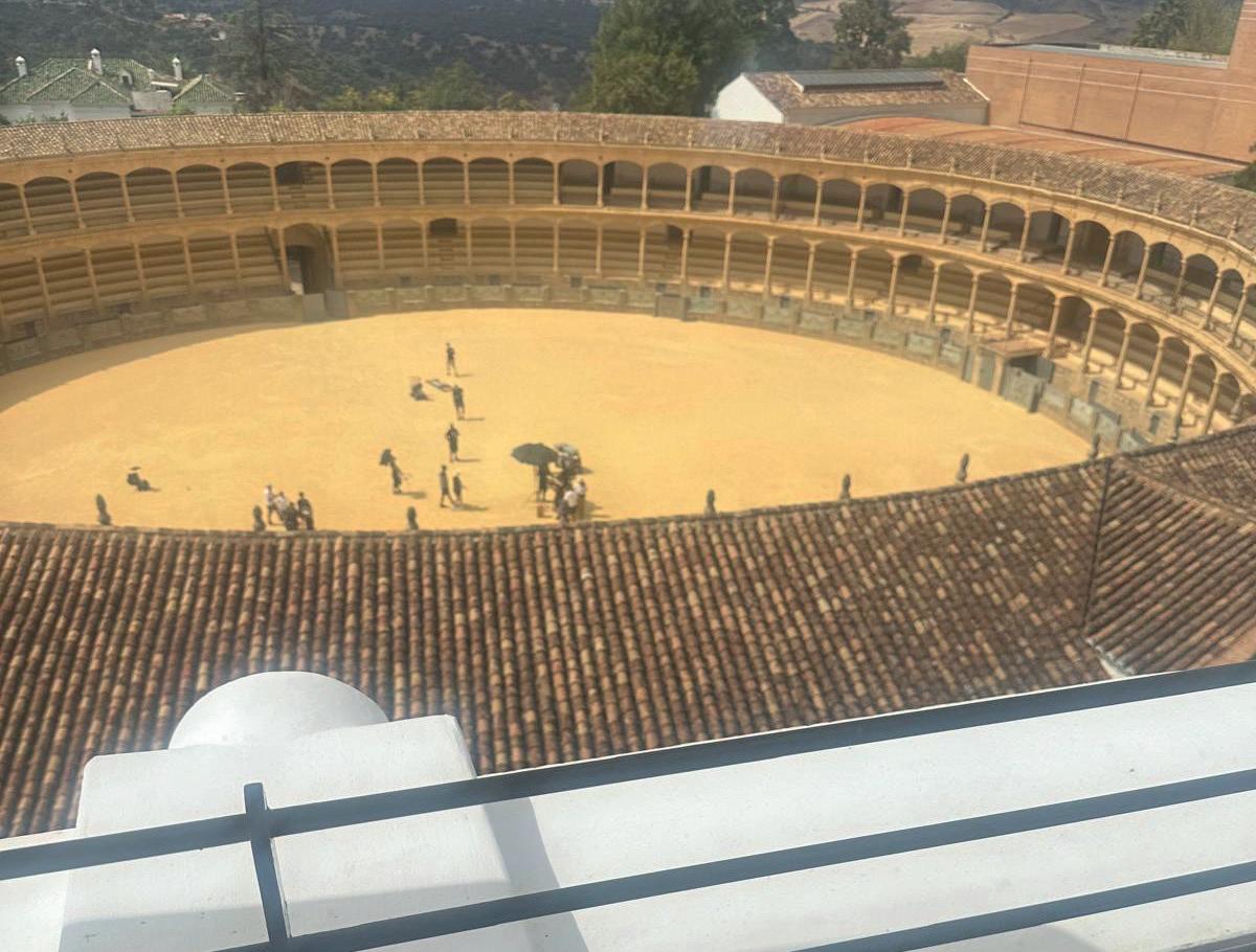 From the amazing perch - high above the world’s oldest bullring with a backdrop of mountains behind - you could watch the production on its first day of filming.