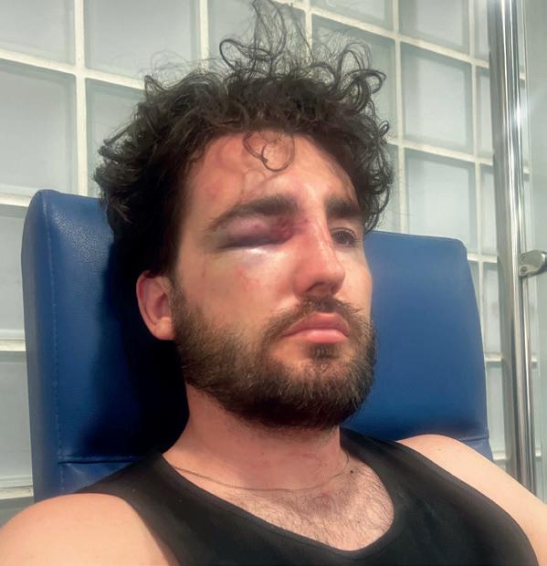 “He has broken his eye socket and nose and will need to have facial reconstruction,” his furious sister Fleur Wheatley, 32, told the Olive Press.