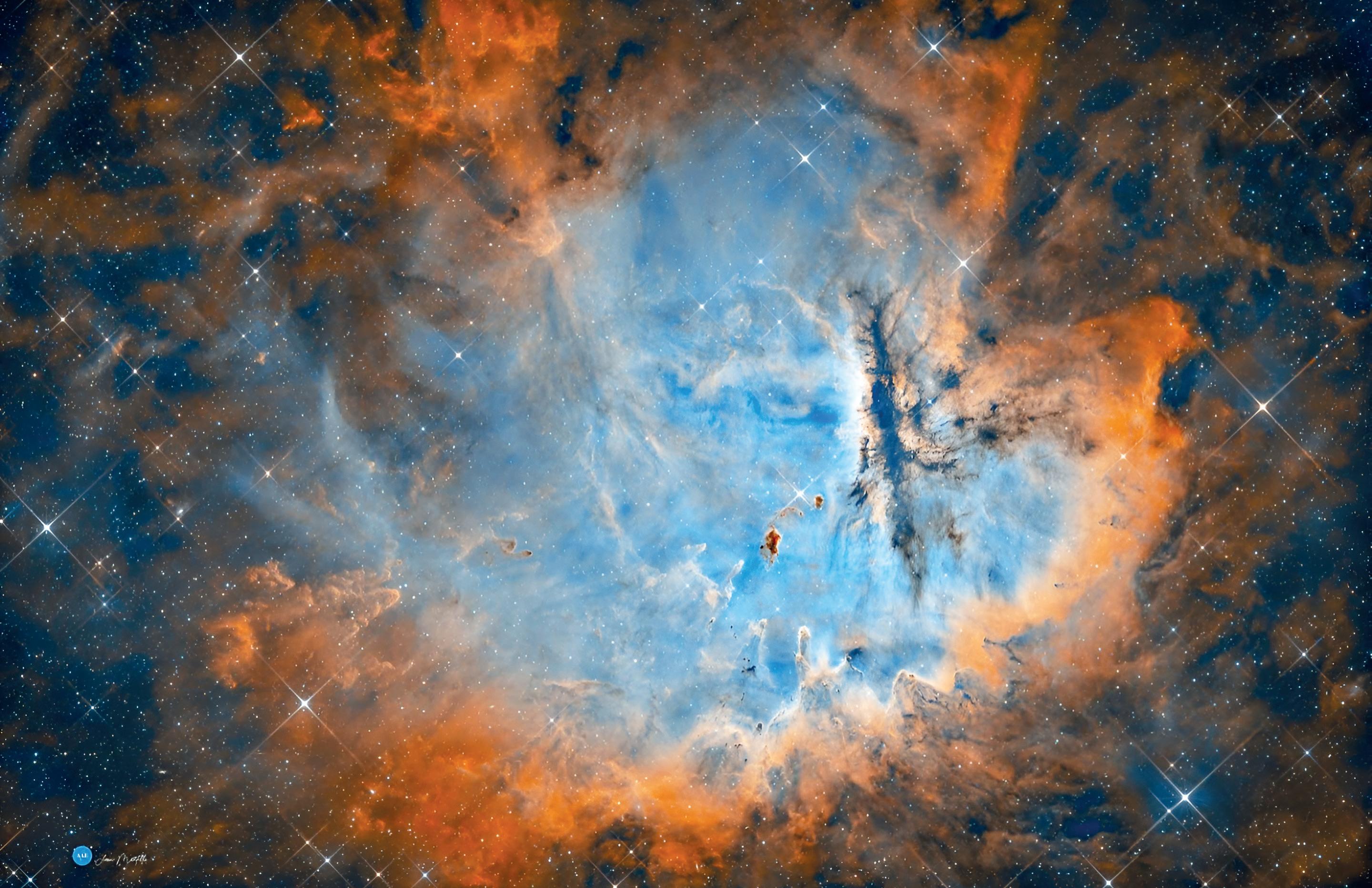 Captured by the Cala d’Hort telescope, the image shows the Pacman nebula (NGC281) where new stars are forming. It is 10,000 lightyears from earth, in the Cassiopeia constellation and around 80 years of light are captured in the photo.