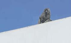 A BABOON surprised residents of Murcia City's Agridulce ur banisation after they spotted it dodging traffic to cross a road. With the Terra Natura theme park in the area, suspicions pointed to it coming from there, but it had actually escaped from a veterinary farm belonging to the University of Murcia. The primate ended up on the roof of a warehouse. It was anaesthetised with a tranquiliser rifle and returned to the farm unharmed.