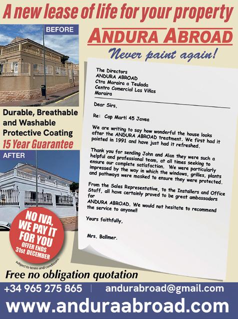 Just thought I would write in to congratulate you on the new paper edition format & slowly developing a national aspect. Keep up the good work on issues such as the disgraceful Costa del Sol development and financially aggrieved pensioners over