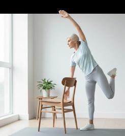 Standing on one leg for a few seconds near a stable support, walking in a straight line inside the house, or rising from a chair without using the hands are simple actions with proven clinical impact. Programs combining strength and balance reduce fall risk by up to 40%.
