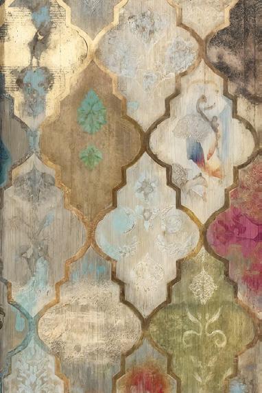 Blending old-world elegance with contemporary abstraction, this composition offers timeless appeal through its fusion of pattern, patina, and artistic flair.