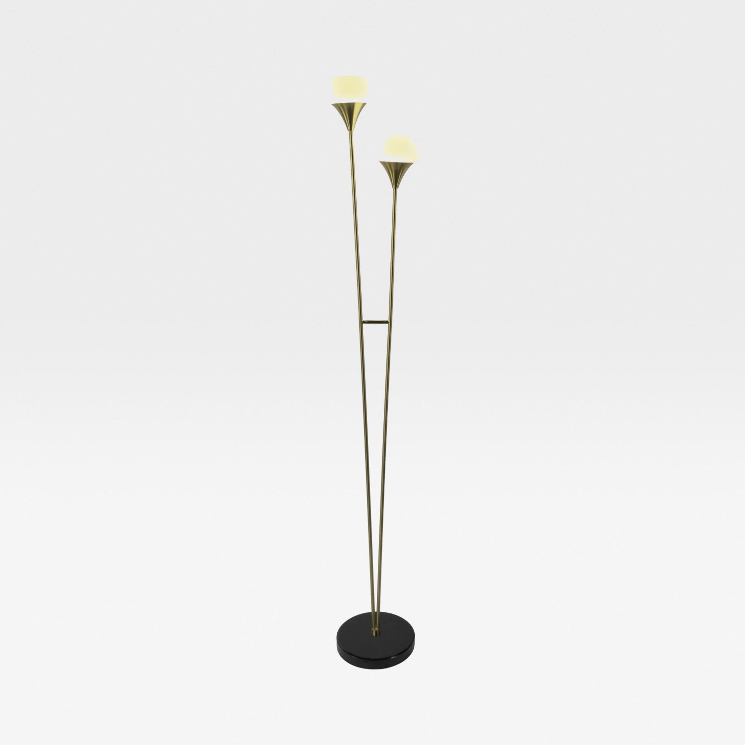 The Elche Floor Lamp has two slender stems, each with a warm glow. Its unique design adds modern elegance and cozy ambient lighting.