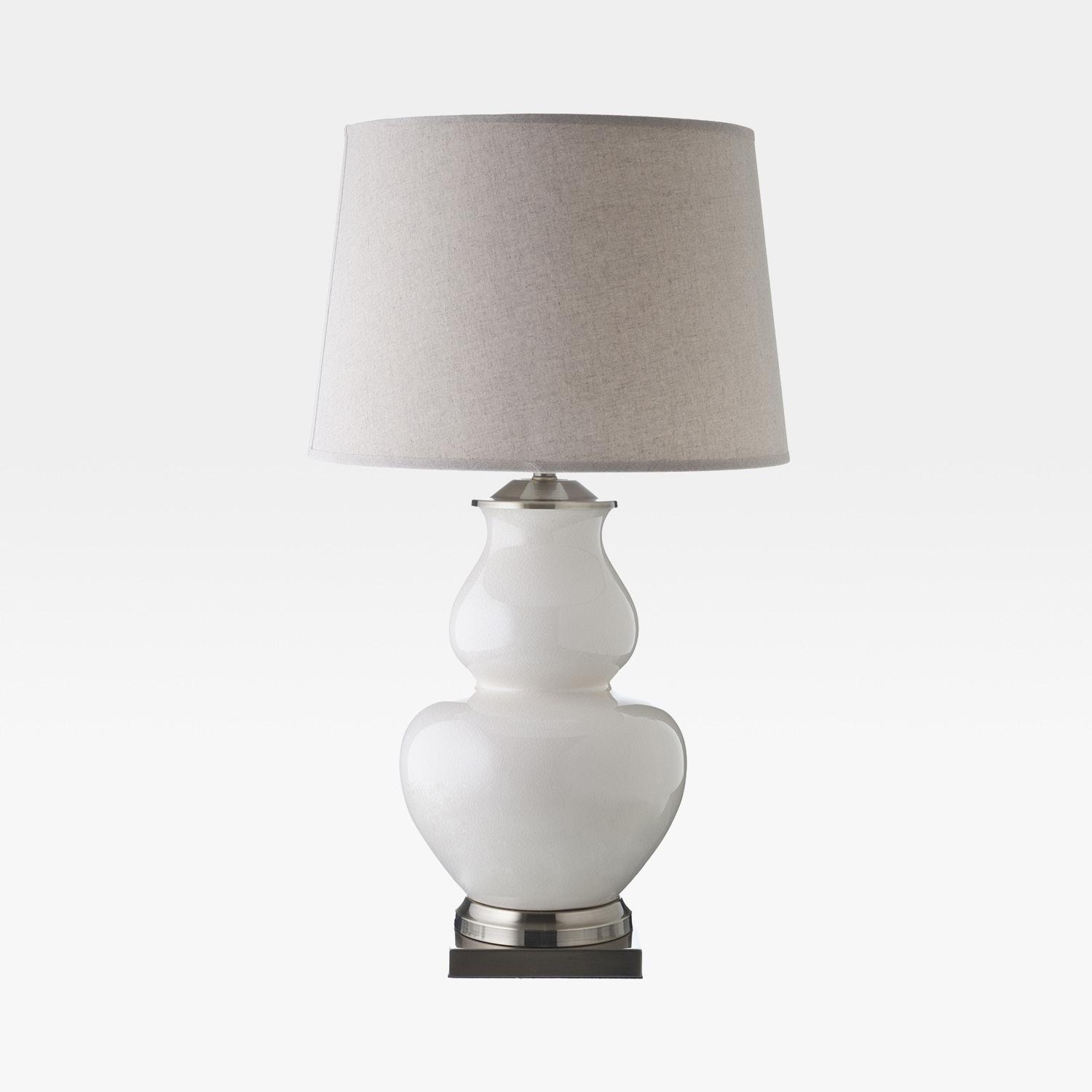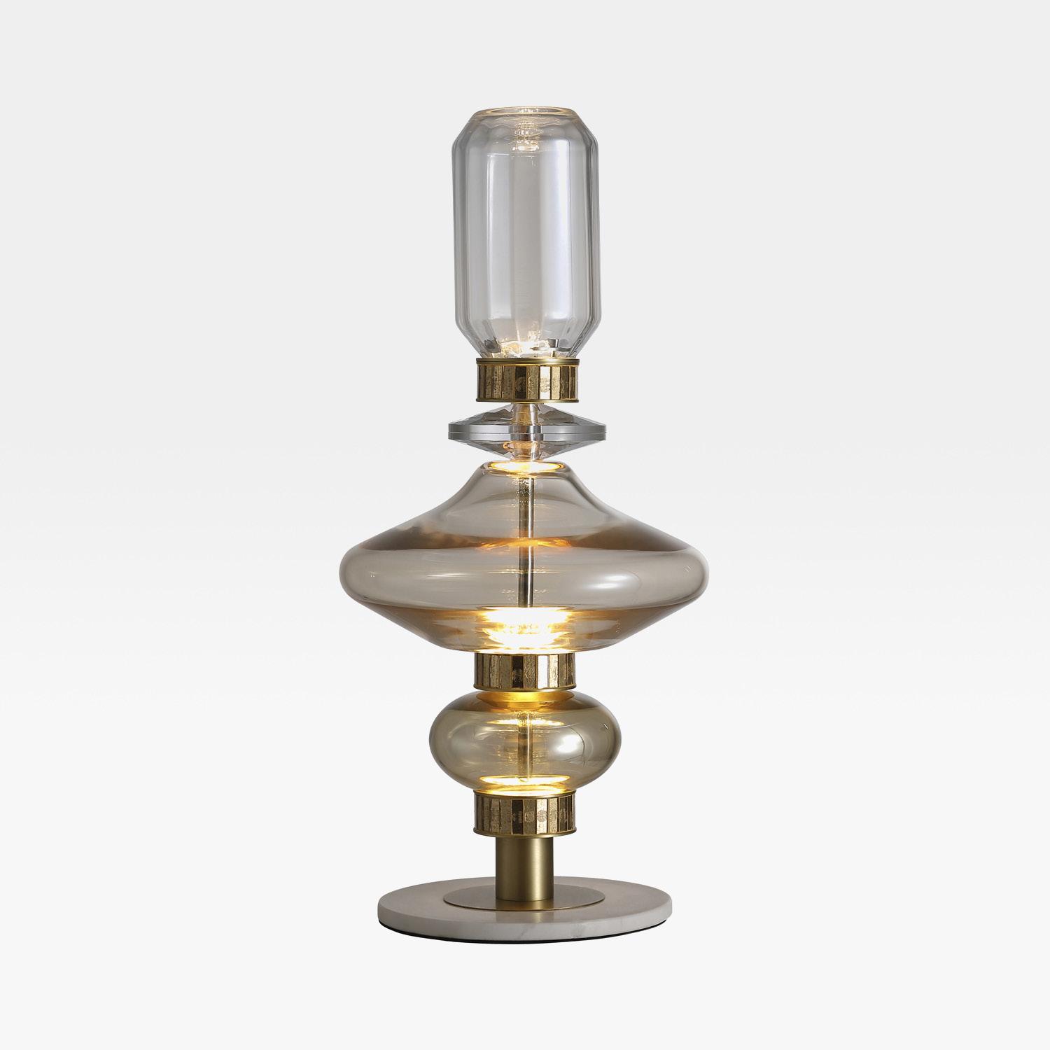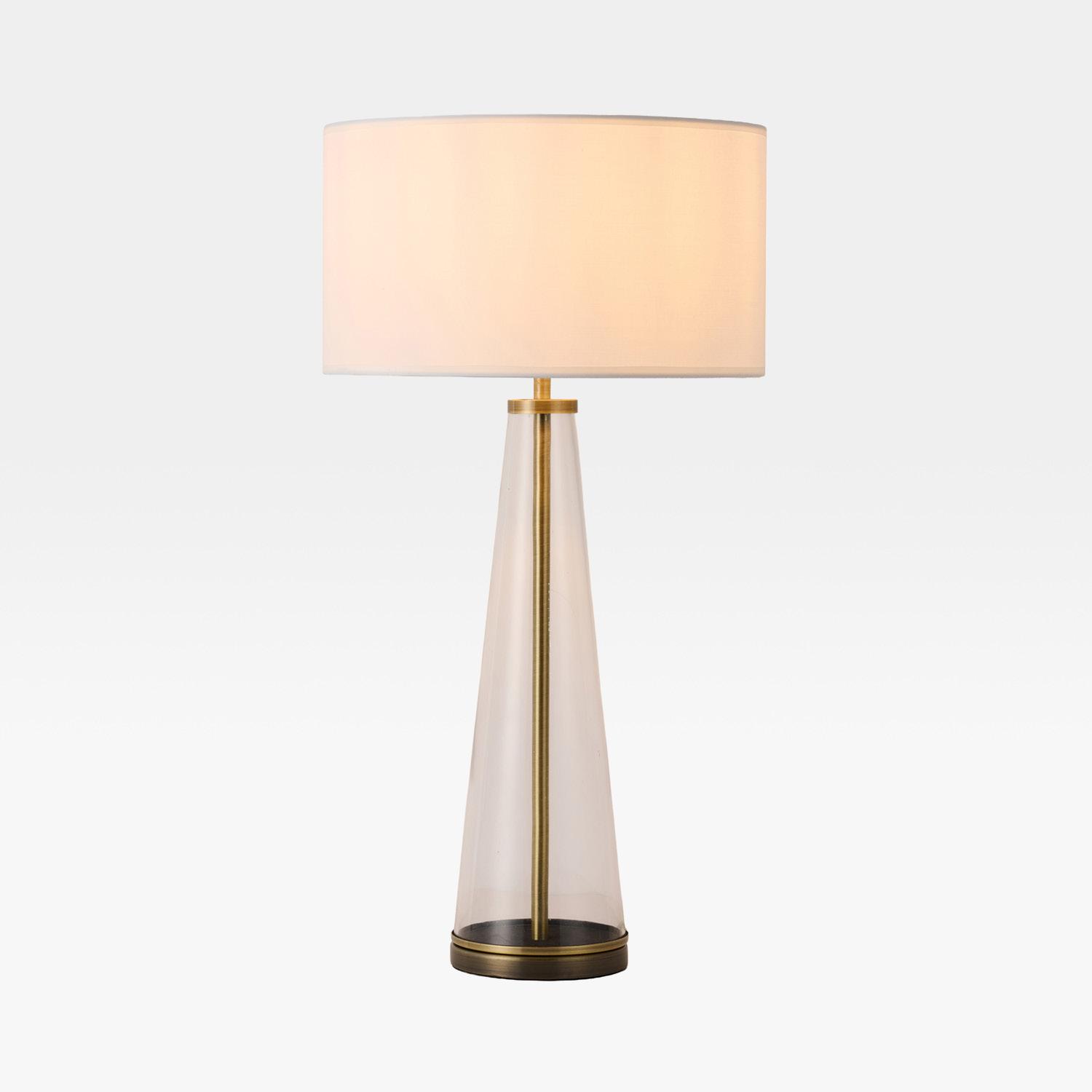 The Gijon Table Lamp features an oversized, transparent base. Its bold, modern design adds light and intrigue to any space.