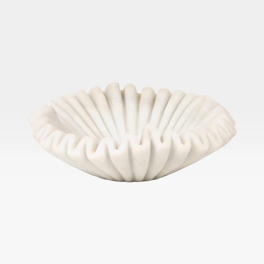 Hand-carved from Makrana marble, the Frill bowl blends timeless strength with organic form. Its rippling rim and fluted interior catch light beautifully, making each eco-friendly piece both functional and sculptural.