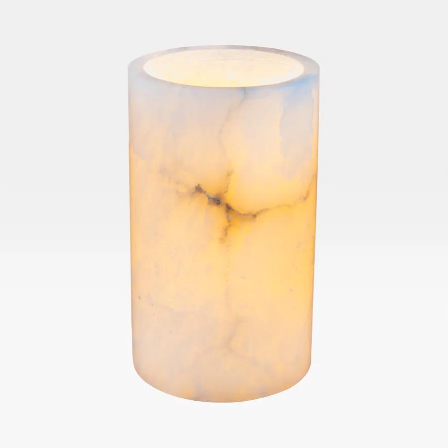 Handcrafted from premium alabaster, this hurricane features natural veining and subtle translucence. When lit, it casts a soft, diffused glow, adding refined elegance and warmth to any space.