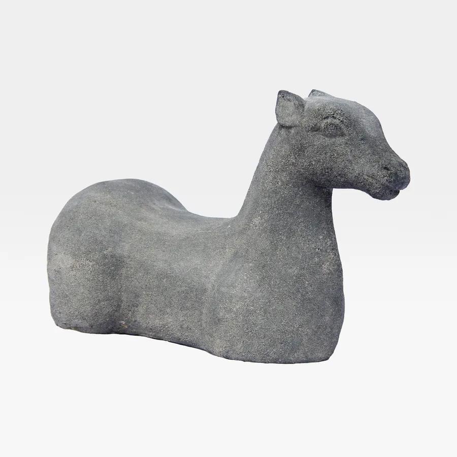 ABSTRACT horse sculpture showcases a stylized form with smooth curves and minimal detailing. Its rough texture and solid build evoke a sense of raw elegance, making it a striking piece of modern artistry for any space.