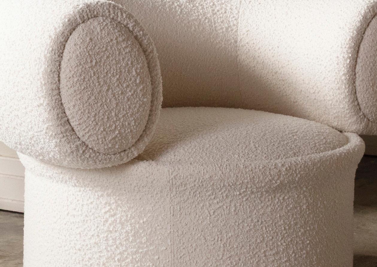 Transform your home with our modern TUBE armchair, seamlessly blending style and comfort. Its rounded design and boucle chenille upholstery exude contemporary charm, offering luxurious relaxation.