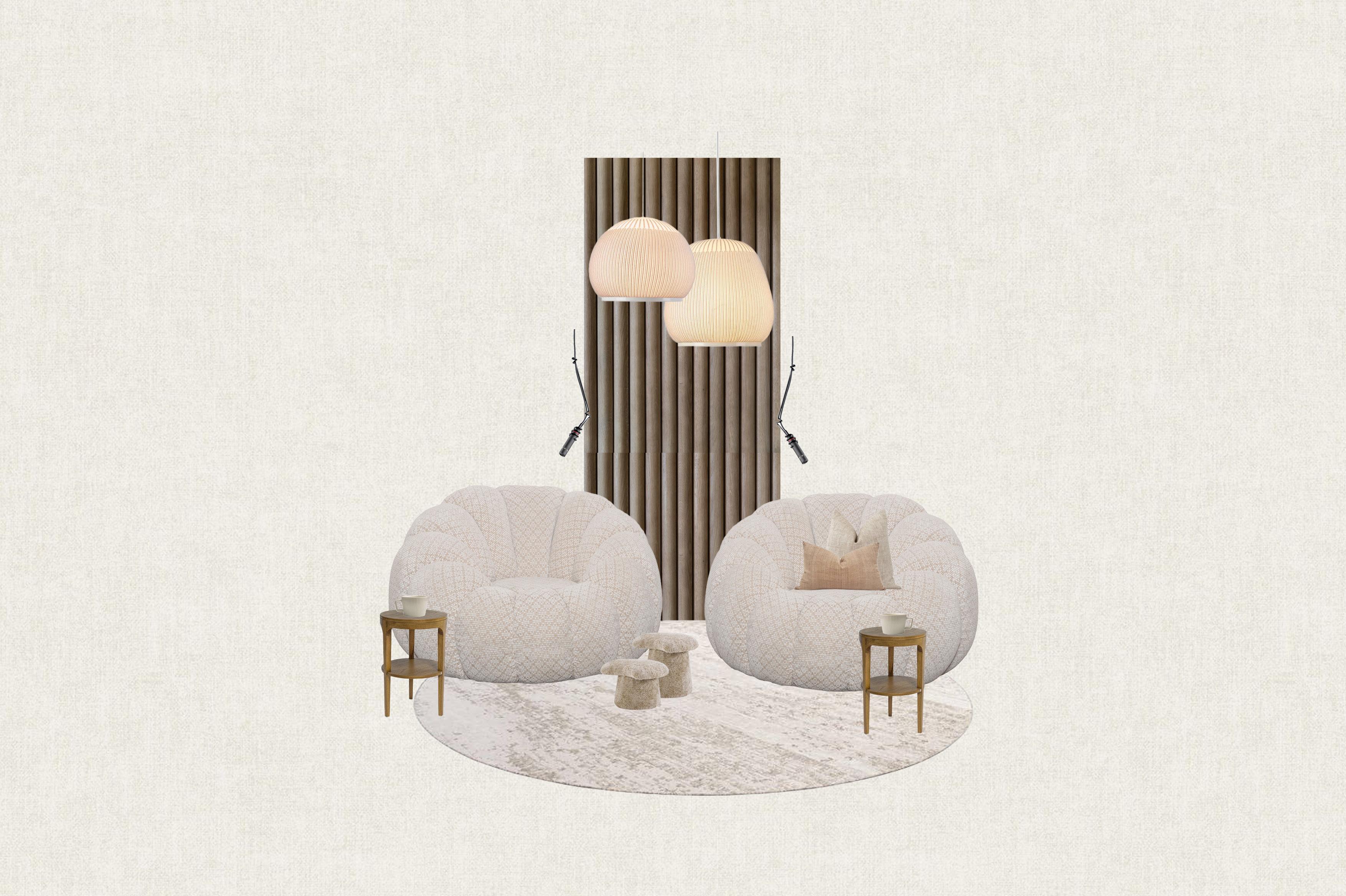 Sink into our low to the ground, cloud-like chairs, plush, white, and irresistibly cozy. Their soft, enveloping form combines ultimate comfort with understated elegance, making them a dreamy addition to any space.