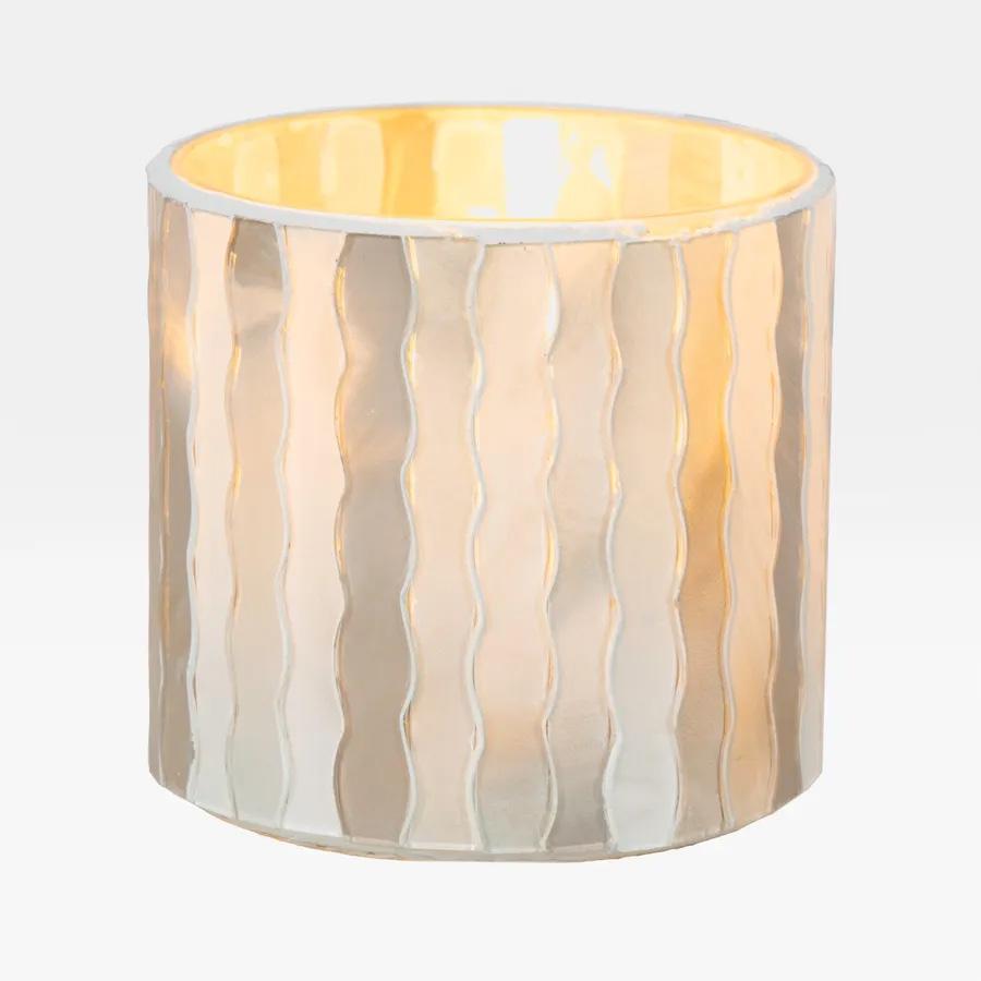 This glass tea light holder combines warmth and elegance. Its soothing beige hue and handcrafted details create a tranquil, stylish accent for any space.