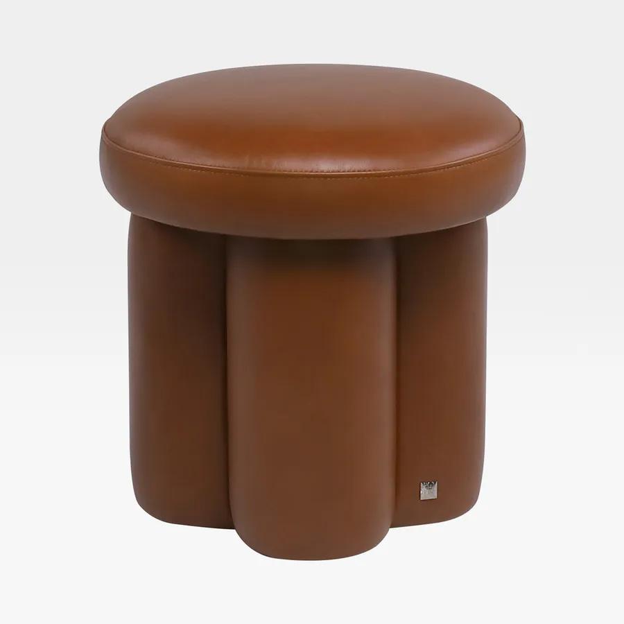 The MUSHROOM stool features a whimsical silhouette wrapped in cozy beige chenille. Its compact build and inviting shape add both charm and function, making it a standout piece in any contemporary space.