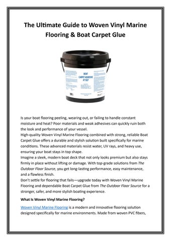 The Outdoor Floor Source is your trusted online distributor for marine carpet, boat flooring, woven vinyl, and trailer bunk pads. We sell directly to the public with aggressive prices, free shipping on all orders, and only premium products backed by warranty for complete customer confidence.