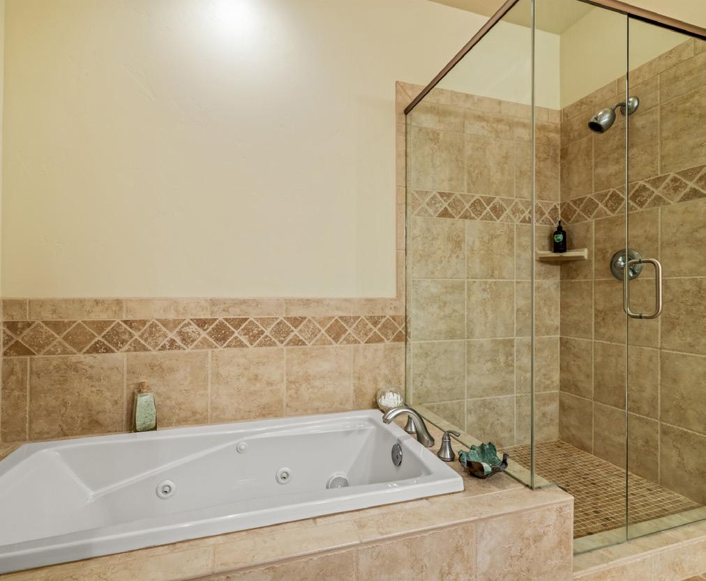 This four-bedroom home includes two luxurious primary suites. The oversized upstairs primary offers stunning Emerald Mountain views, a spa-like bath with jetted tub, separate shower, dual sinks, and an extra-large walk-in closet. Two additional upstairs bedrooms share a dual-sink bath and enjoy built-in workspaces and wildlife views. The main-floor primary suite features backyard views, dual closets, and a well-appointed ensuite bath.