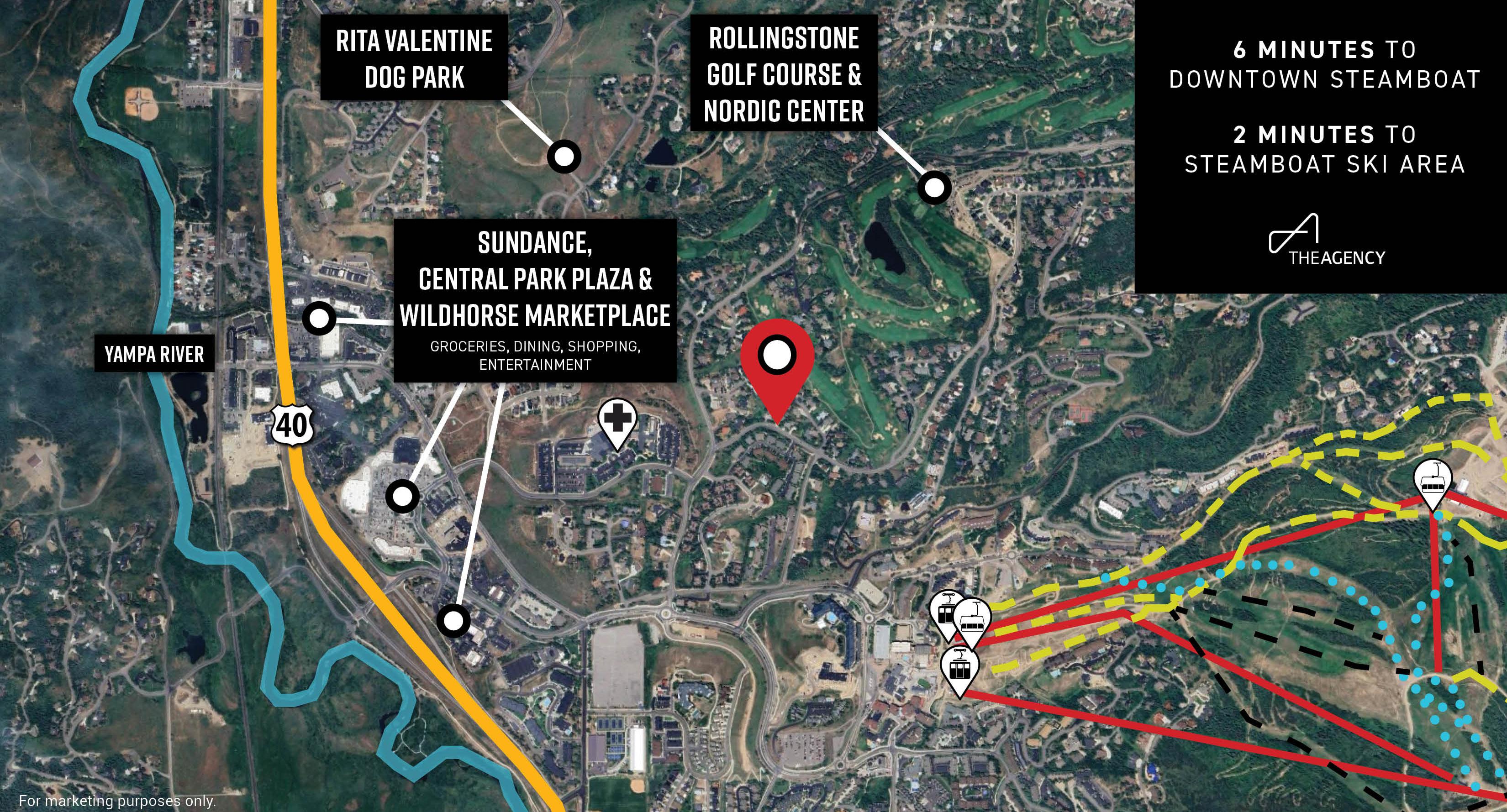 • Less than one mile from Steamboat Ski Area with free city bus access, easy access to shopping, dining, and trails