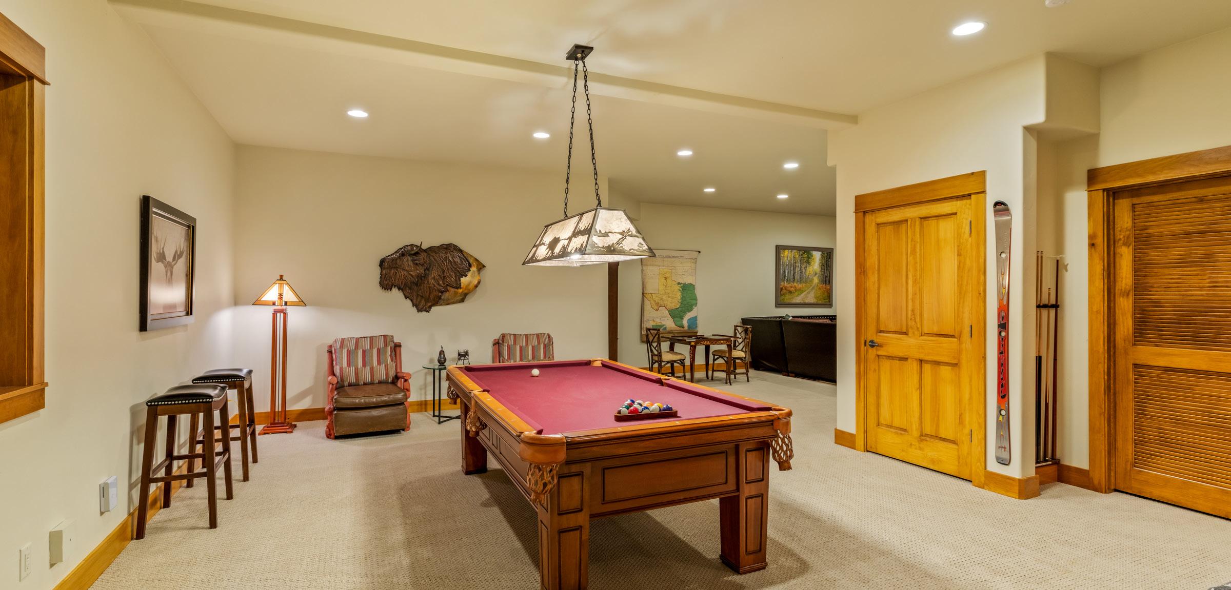 The lower level is a standout, featuring a large media and game space, including a pool table, wet bar, full bath, a pair of queen bunks, and abundant storage; ideal for hosting family and guests.