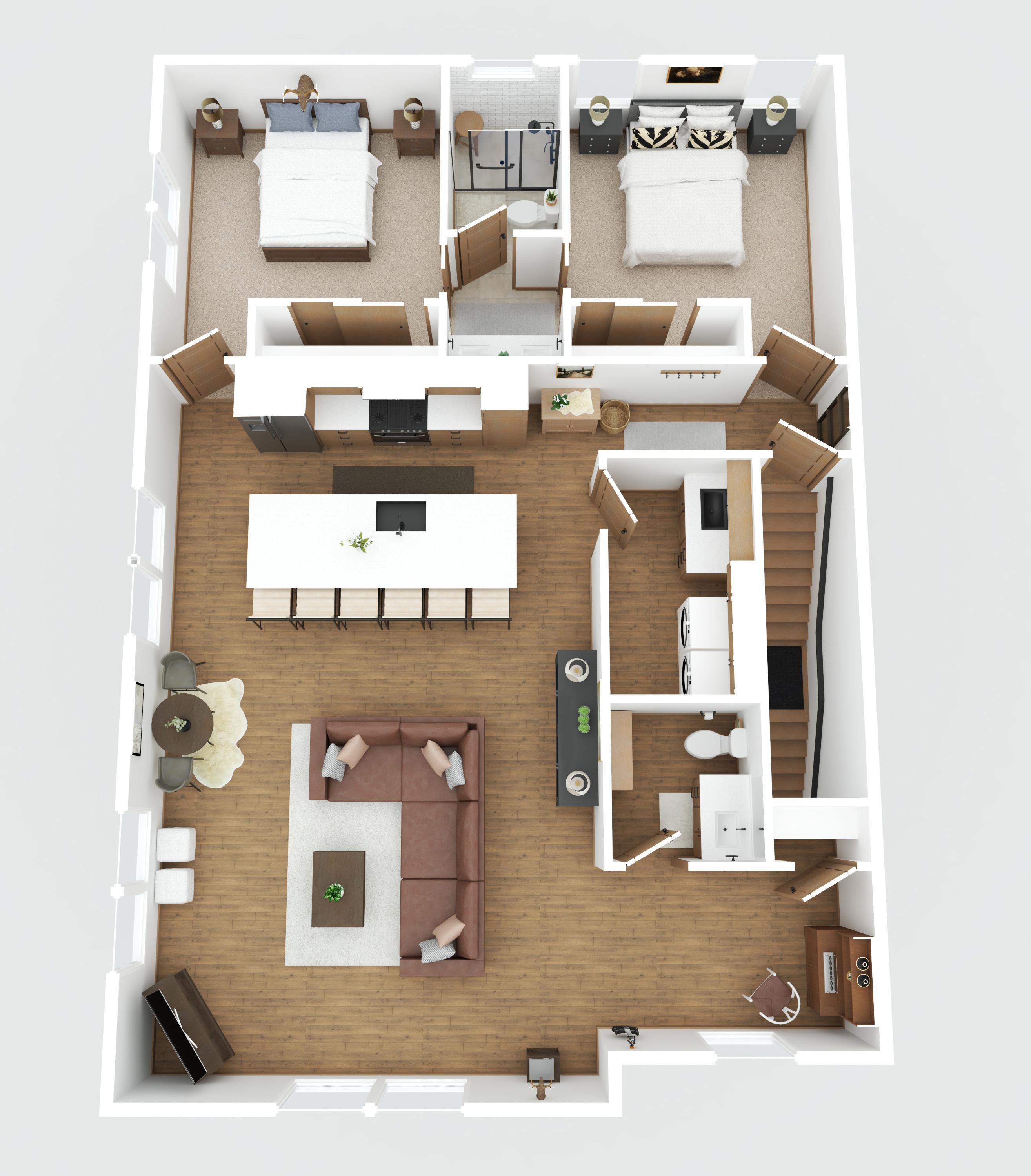 • Spacious open-concept living area with floorto-ceiling windows and abundant natural light